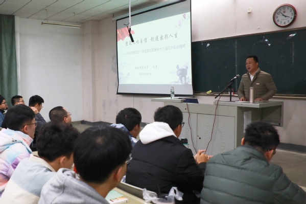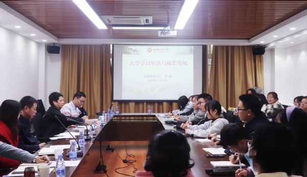 2020年12月23日,校党委副书记李绚以《大学学习与成长发展》为题,为马克思主义学院2020级本科生上思政课。他结合自身经历,以“三大课堂”为切入点,从学会学习、学会做人、学会做事和学会生活等4个方面进行了交流分享。他强调,青年学生要有“想干事”的追求、“能干事”的素质、“干成事”的担当,既要“仰望星空”做好远景规划、又要“脚踏实地”做好身边小事,做求真的人、做有品格的人、做守孝道的人。