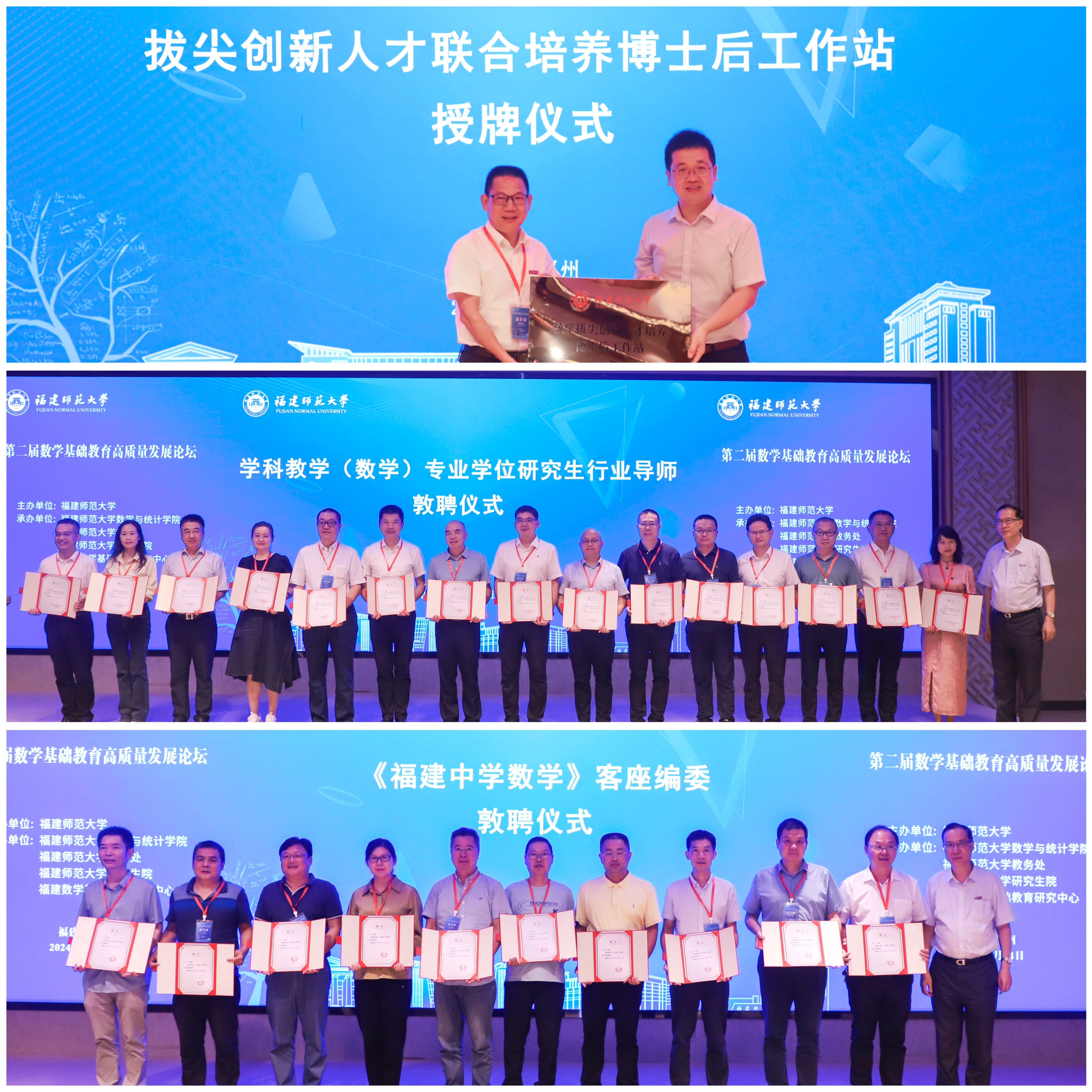 开幕式上还举行了拔尖创新人才培养博士后工作站—福建师大附属中学站授牌仪式和学科教学(数学)专业学位研究生行业导师、《福建中学数学》客座编委敦聘仪式。