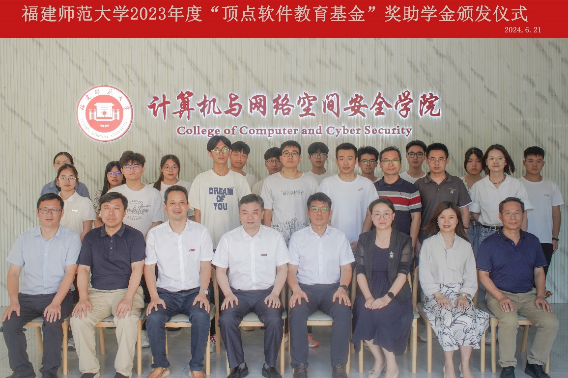 日前,2023年度“顶点软件教育基金”奖助学金颁发仪式在必一在线平台(中国)官网举行。福建顶点软件股份有限公司副总裁萧锦峰、人力资源总监程佳、人力资源招聘经理周玥,副校长吴剑锋,学生工作部、计算机与网络空间安全学院负责人,师生代表和受奖助学生参加活动。