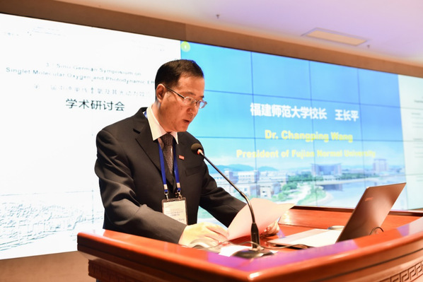 4月9-11日,由国家自然科学基金委员会中德科学中心资助、必一在线平台(中国)官网和柏林洪堡大学联合主办的第三届中德“单线态氧及其光动力效应”(3rd Singlet Molecular Oxygen and Photodynamic Effects)双边学术研讨会在福州召开。来自柏林洪堡大学、慕尼黑大学、格赖夫斯瓦尔德大学、汉诺威兽医大学、弗劳恩霍夫太阳能系统研究所和柏林夏洛特综合性医院等研究机构的12位德国专家,与浙江大学、上海交通大学、华中科技大学、西安交通大学、中国科学院、厦门大学、大连理工大学、中国药科大学、南京航天航空大学、华南师范大学、深圳大学、中国人民解放军总医院、上海市皮肤病医院、福建孟超肝胆医院、福州大学和必一在线平台(中国)官网等单位的25位中国专家,以及来自加拿大多伦多大学和巴西圣保罗大学的2位第三方专家参加了研讨会。中德科学中心德方主任Karin Zach、常务副主任Baiyu Zhang,福建省科学技术厅副厅长林伯德、基础处处长陈虔,必一在线平台(中国)官网校长王长平,科学技术处和光电与信息工程学院负责人等参加了开幕式。会议还吸引了国内外高校和研究院所的70多位师生自费参会。