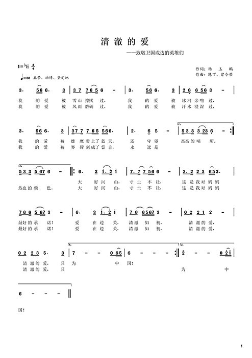 边境对峙事件中部队官兵卫国戍边先进事迹的新闻报道在全国引发热烈反响。音乐学院校友、福建省音协常务理事、新文艺群体代表陈丁看到报道后心潮澎湃、难以平静。作为一名有着21年军龄的退役军人,他怀着满腔热忱,决定与甘肃词作家杨玉鹏、广西歌舞剧院作曲家曾令荣合作创作一首致敬卫国戍边英雄的歌曲。他们一致决定,歌名就叫《清澈的爱》,献给5位卫国戍边英雄官兵,也向每一位边防战士致以最崇高的敬意。223日上午,歌曲MV在新华网、今日头条、哔哩哔哩等多家视频网站播出,迅速超过百万点击量。