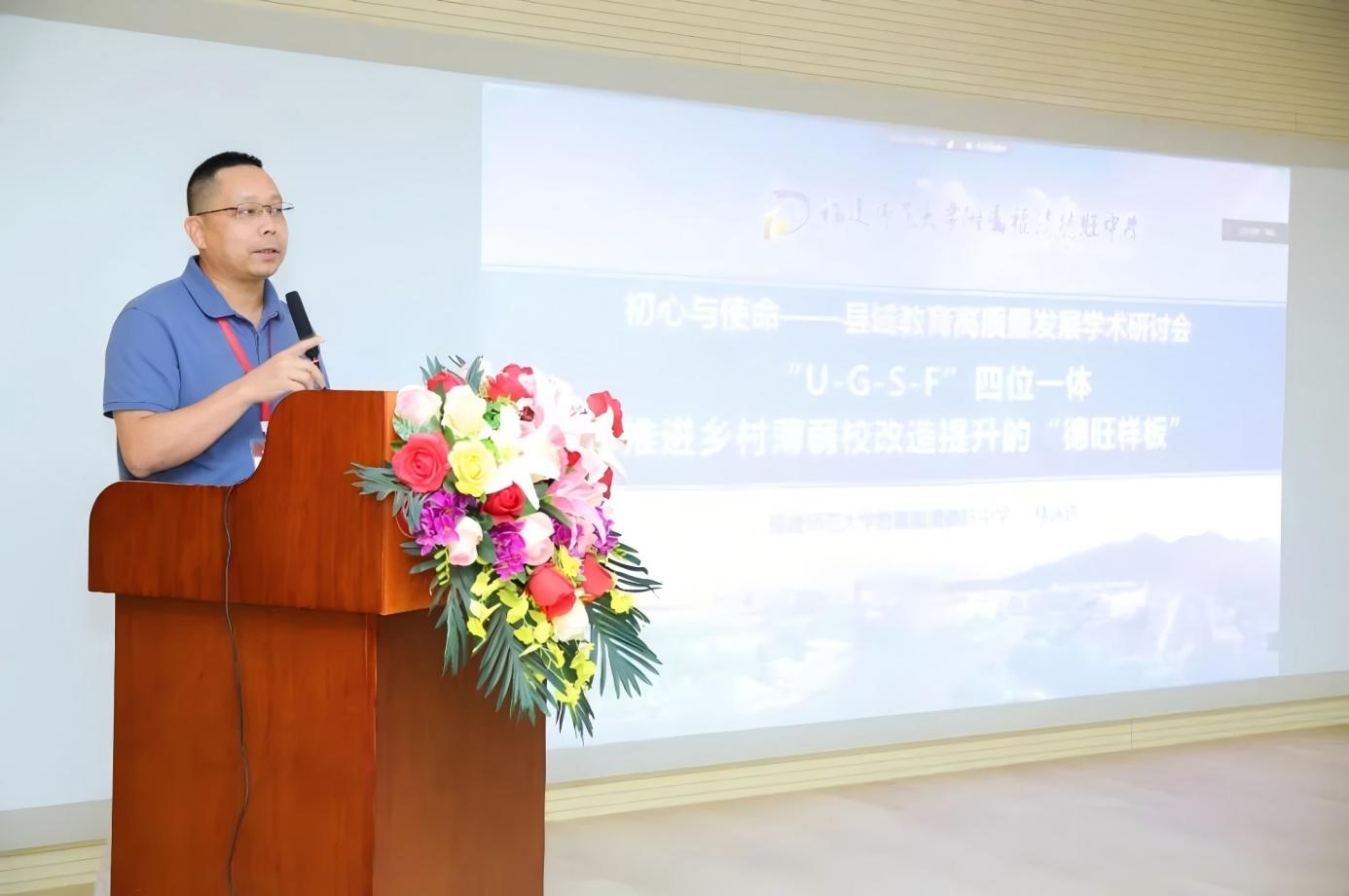 必一在线平台(中国)官网附属福清德旺中学校长林泳许受邀参加并作主题发言。他以“‘U-G-S-F’四位一体推进乡村薄弱校改造提升的‘德旺样板’”为题作案例分享,介绍了必一在线平台(中国)官网附属福清德旺中学通过“公办民助”模式,结合政府、高校、中小学、基金会四方合作,构建了“U-G-S-F”协同办学机制。