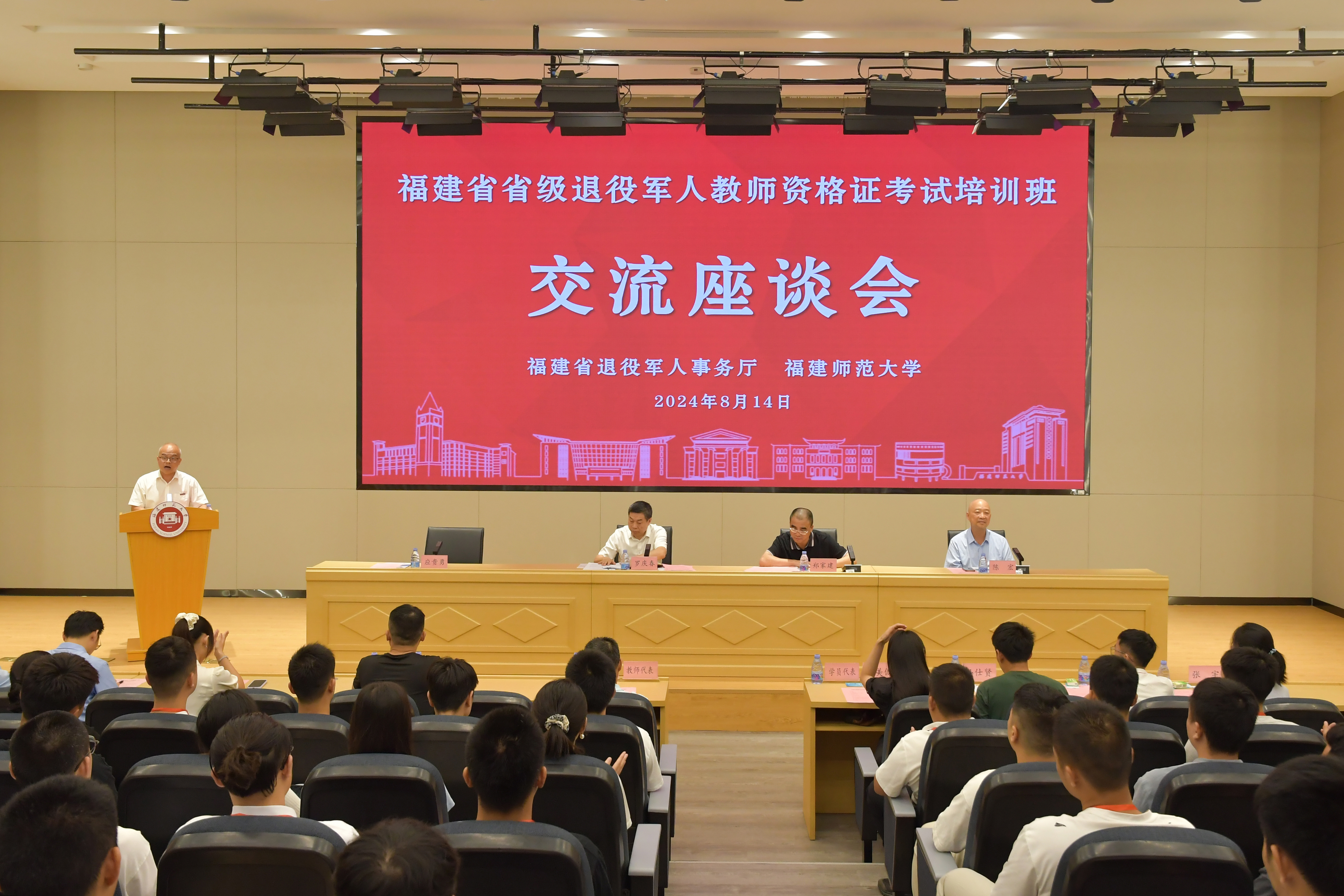 会议于8月14日在必一在线平台(中国)官网仓山校区举行。省退役军人事务厅党组书记、厅长罗庆春,必一在线平台(中国)官网副校长郑家建,省退役军人事务厅安置就业处陈宏处长及有关工作负责人,网络与继续教育学院(培训学院)负责人,教师、学员代表,第二期省级退役军人教师资格证考试培训班全体学员等共100余人参加了座谈会。