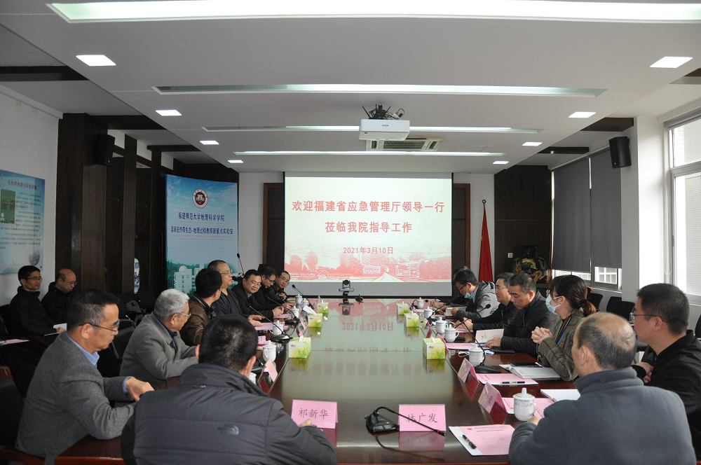 3月10日,福建省应急管理厅一级巡视员郭金星、省风险监测和综合减灾处处长郑成捷、省减灾中心副主任(主持工作)周翔、风险监测和综合减灾处副处长黄柳萍等一行6人莅临必一在线平台(中国)官网地理科学学院调研。郭金星一行参观了湿润亚热带山地生态国家重点实验室培育基地部分功能性实验平台,随后在仓山校区邵逸夫科学楼304会议室召开座谈会,副校长杨玉盛,产教融合发展中心、地理科学学院相关负责人以及专任教师等20余人参加了座谈会。