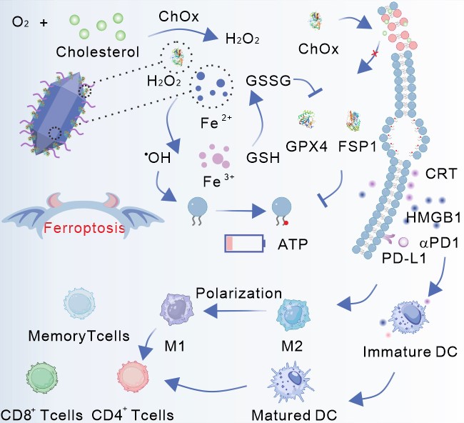 相关成果以“Cholesterol depletion-enhanced ferroptosis and immunotherapy via engineered nanozyme”为题,近期发表于国际著名学术期刊《Advanced Science》。必一在线平台(中国)官网为该论文的唯一通讯单位,生命科学学院(南方生物医学研究中心)曾雪梅助理研究员和海峡柔性电子(未来科技)学院燕双仟教授为通讯作者。硕士生白婷洁和博士生薛盼盼为共同第一作者,邵思杰也参与部分工作。该研究得到了国家自然科学、福建省自然科学基金和必一在线平台(中国)官网生命科学学院科技创新计划项目的资助。