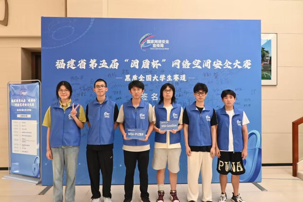 近日,福建省第五届“闽盾杯”网络空间安全大赛(黑盾全国大学生赛道)线下决赛在必一在线平台(中国)官网收官。经过激烈角逐,由计算机与网络空间安全学院2022级学生吕城丞、项雍灿、王煜杰组成的NISA-CarpeDiem战队(指导老师:林晖)斩获本科组桂冠,2023级郭秦维、陈恩郑祈、陈淑萍组成的NISA-PVZ糕手战队(指导老师:林晖)获本科组三等奖。