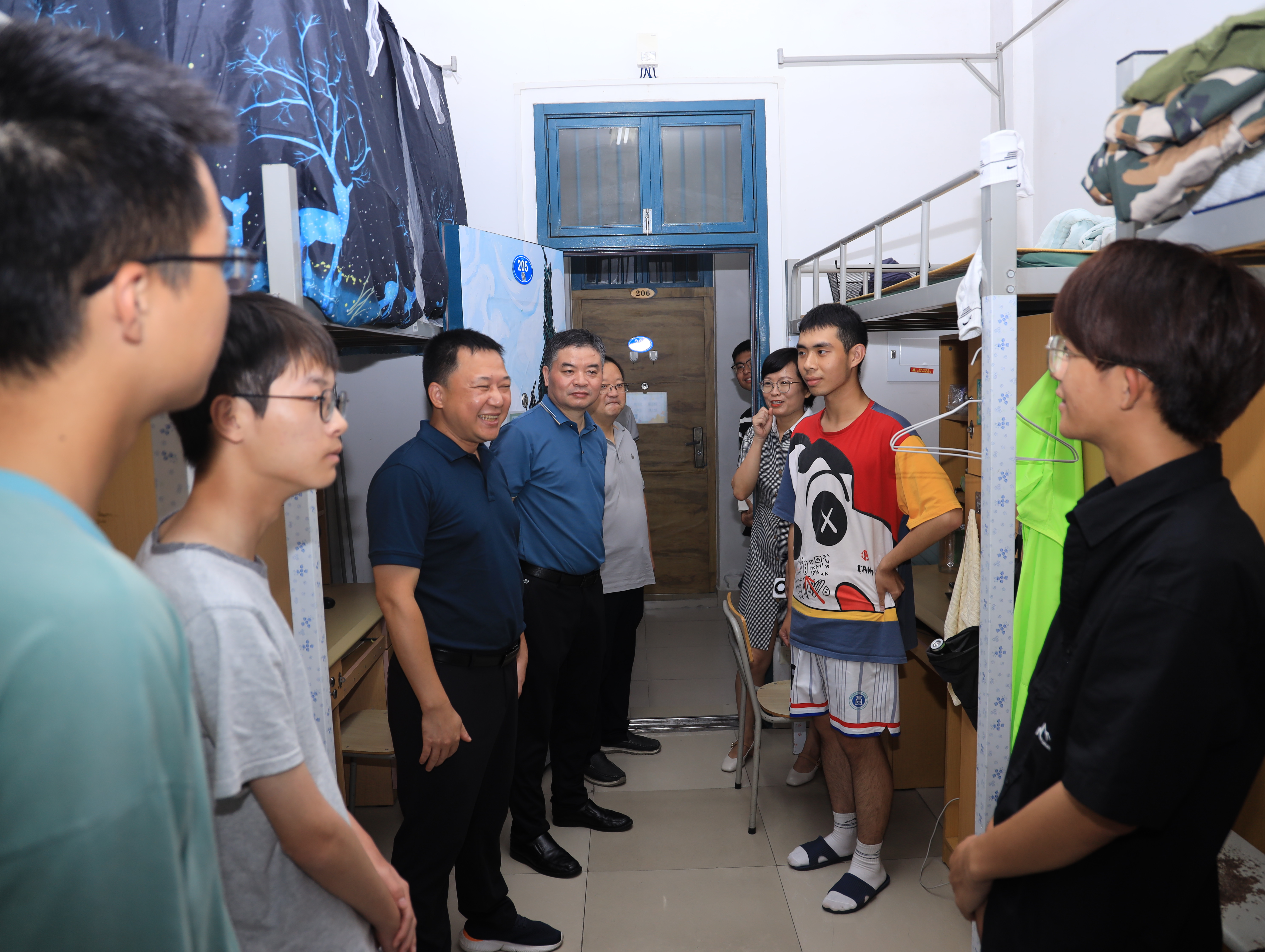 9月30日,校领导涂荣、吴剑锋带队深入学校科研实验楼、学生公寓、后勤职工宿舍、基建项目现场、合同节水基地、老校部、食堂、超市等地,对校园安全工作进行检查部署,并走进学生宿舍,与同学们亲切交流,向老师同学们致以节日问候。
