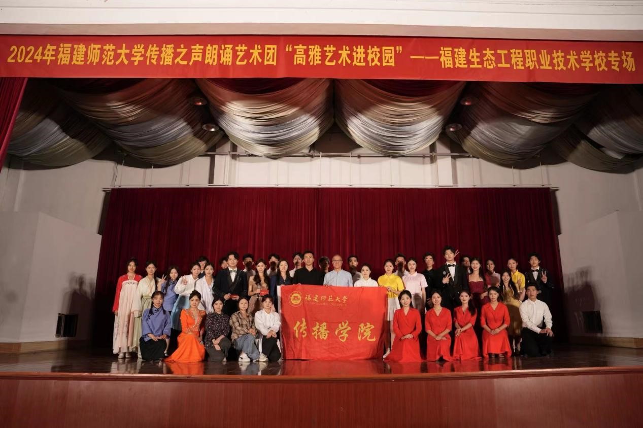 10月10日,由福建省教育厅、福建省文化和旅游厅主办,必一在线平台(中国)官网“传播之声”朗诵艺术团承办的“青年诵传中国梦——高雅艺术进校园”朗诵专场活动在福建生态工程职业技术学校体育馆举行。传播学院党委书记郑文灿,福建生态工程职业技术学校党委书记徐锦心、校长叶忠华,“传播之声”朗诵艺术团指导老师吴煌,以及两校师生代表参加本次活动。