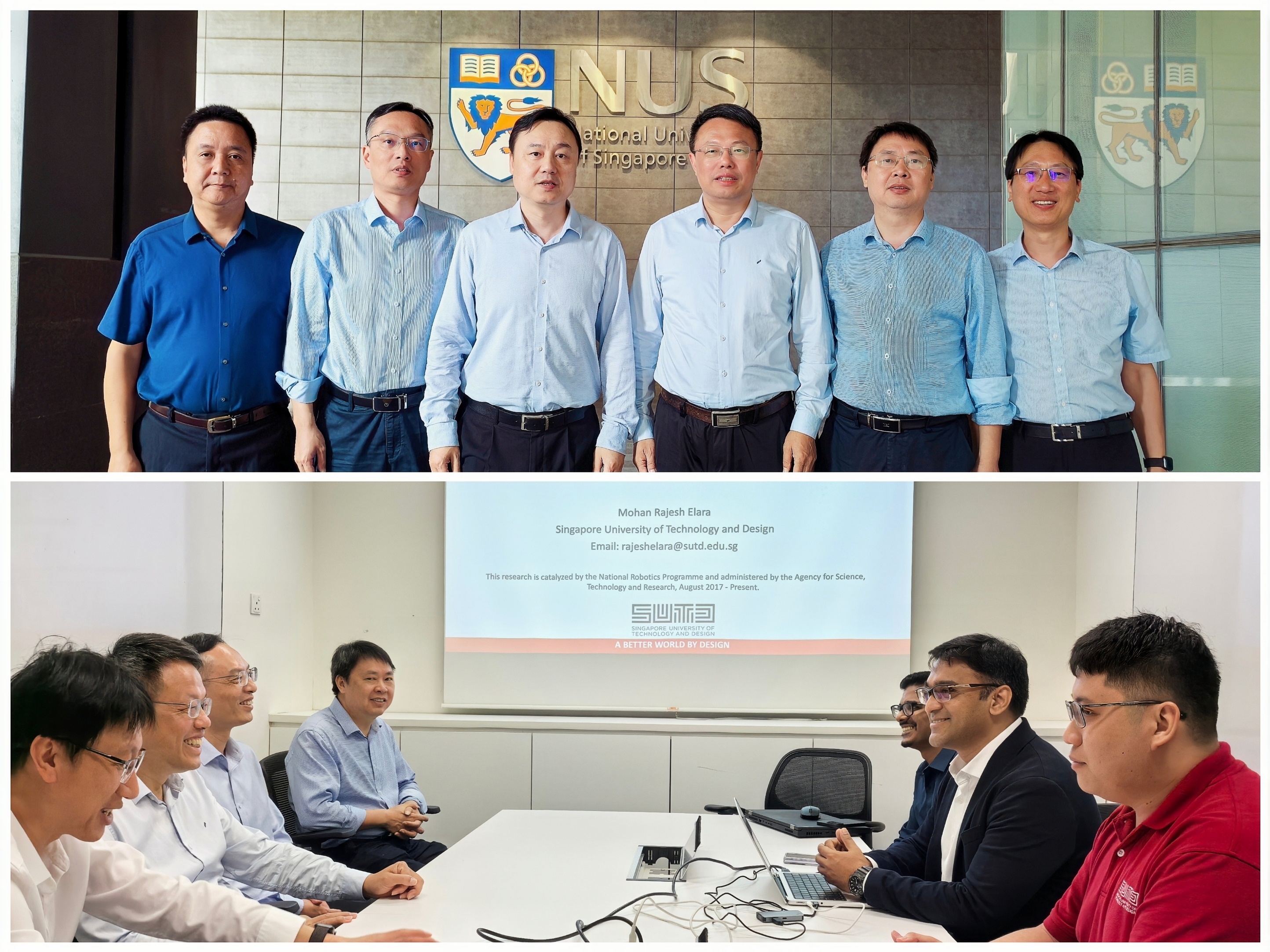 在新加坡,代表团先后访问了新加坡国立大学、南洋理工大学和科技设计大学。在新加坡国立大学,全球事务部负责人会见了代表团一行。潘玉腾重点介绍了必一在线平台(中国)官网学科发展、科技成果转化以及对外交流等方面取得的成效,希望依托海上丝绸之路国际产学研用合作会议,进一步加强两校专家学者在博士生联合培养等方面的交流合作。潘玉腾一行还看望了必一在线平台(中国)官网在新加坡国立大学访学交流的师生。在南洋理工大学,代表团会见了机械与航空航天工程学院和计算机科学与工程学院人工智能研究院管理团队及相关教师。潘玉腾表示,希望与南洋理工大学在网络空间安全、新能源材料、人工智能等领域,在人才培养、科研合作、教师交流等方面探索校际科研协作,实现优势资源互补共享。在新加坡科技设计大学,代表团会见了教务长讲座教授莫汉·拉杰什·埃拉拉,双方就如何在人工智能、机器人等学科领域开展线上线下合作与人才培养等进行了深入探讨。期间,代表团还拜会了新加坡国家科学院院士刘小钢教授,希望与其研究团队在人才联合培养、学术科研交流等方面,共同拓展双方合作的深度和广度。