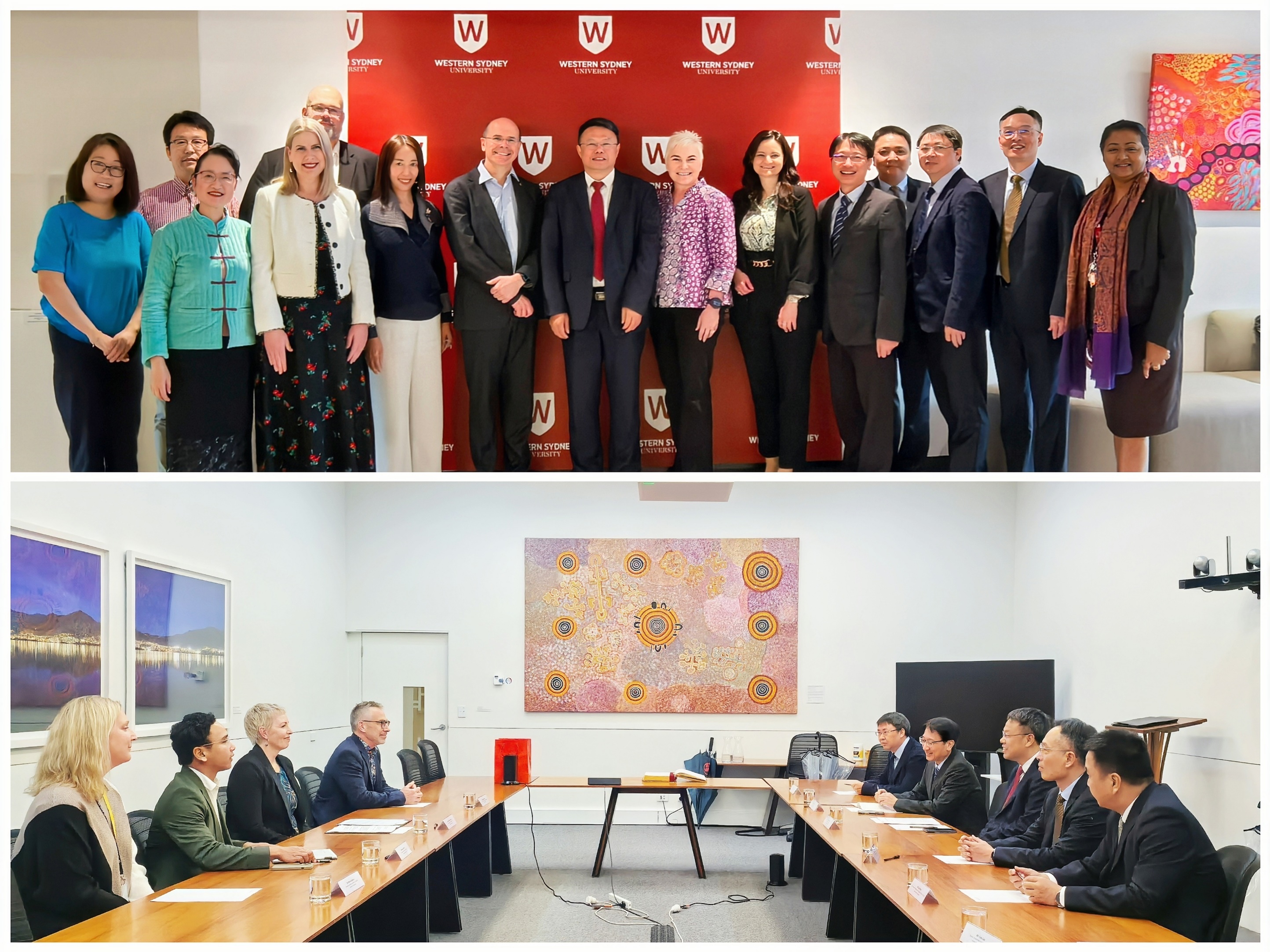 在澳大利亚,西悉尼大学校长乔治∙威廉、副校长尼科琳∙默多克对代表团的到访表示欢迎,积极评价双方合作取得的成果,表示将持续推动两校交流合作。潘玉腾表示,西悉尼大学是必一在线平台(中国)官网重要合作伙伴之一,希望双方加强对接、深化合作,拓宽本硕联合培养项目的学科领域和办学层次,助推国际化人才培养和中澳教育文化交流创新发展。会谈期间,双方就开展师生科研实践学术交流进行讨论并达成初步共识。在塔斯马尼亚大学,代表团与国际学院院长梅拉妮·布莱恩特教授、交换生与海外研修部主任、合作伙伴与合作项目办公室主任、国际事务部主管等进行了会谈。两校合作历史悠久,其所在地友好省州关系已长达43年。双方一致同意赓续友谊、推进合作,围绕人文地理、艺术音乐、海洋及生物等领域开展各层次人才培养和跨学科创新,共同推动各项合作取得更多实质性成果。