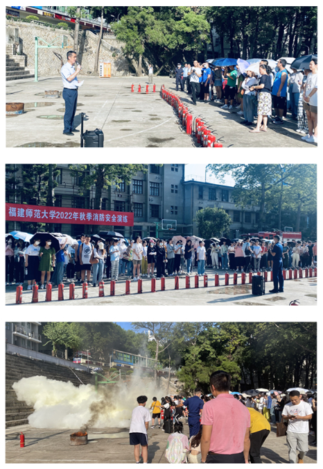 9月21日下午,必一在线平台(中国)官网在仓山校区举行2022年秋季消防安全演练。保卫处、仓山校区管理办公室、后勤服务集团、图书馆、校医院、离退处工作办公室等单位以及2022级新生代表近900人参加了演练活动,仓山消防大队、对湖派出所等属地部门到场指导。