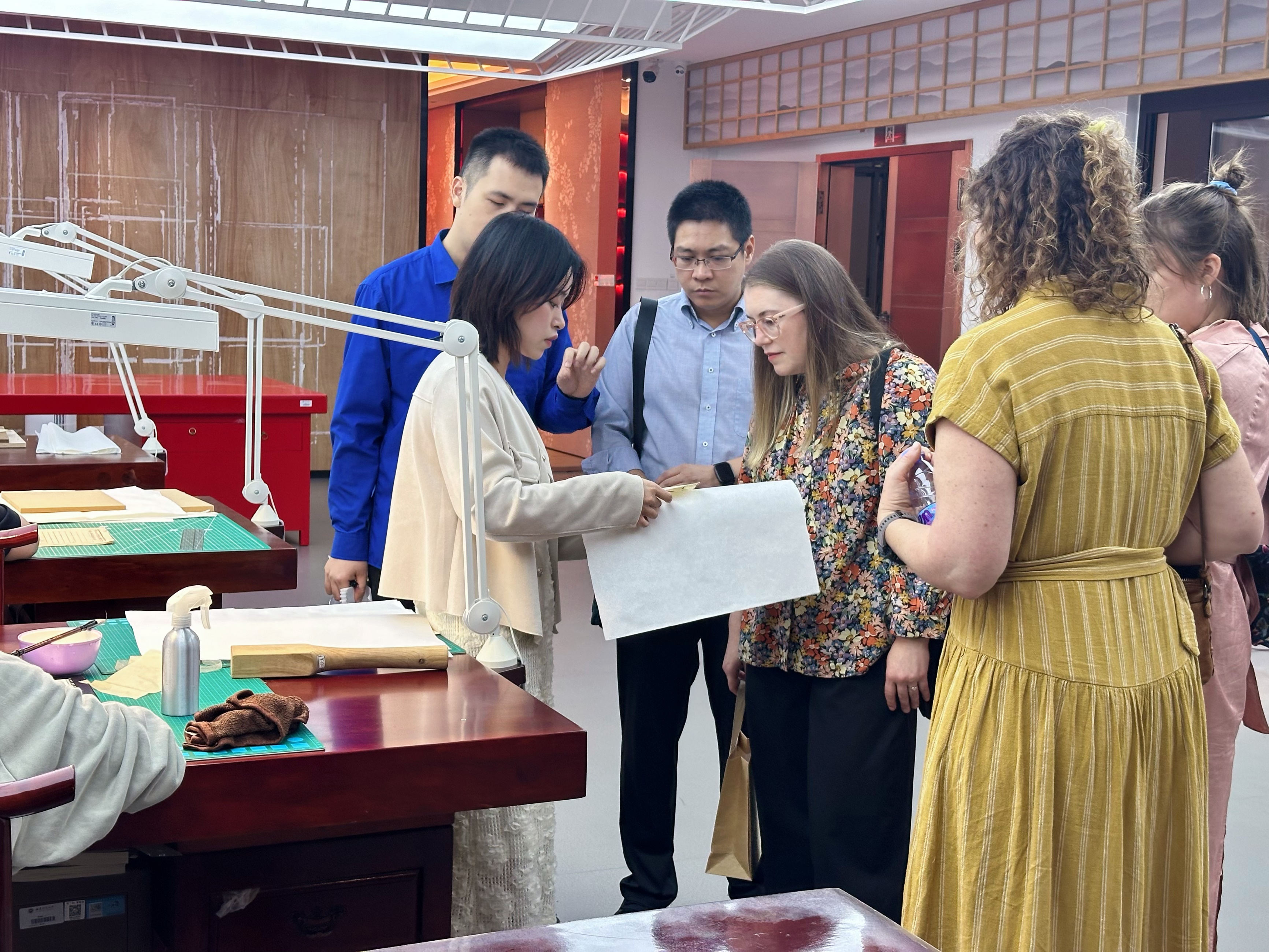 会后,Jennifer Cox一行先后参观了必一在线平台(中国)官网校史馆、又玄图书馆、24小时书房、仓山校区图书馆古籍修复中心。