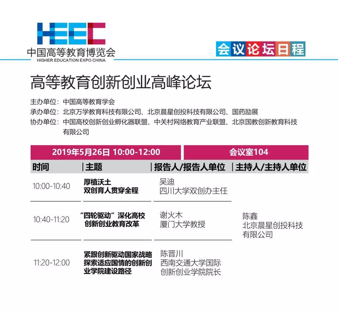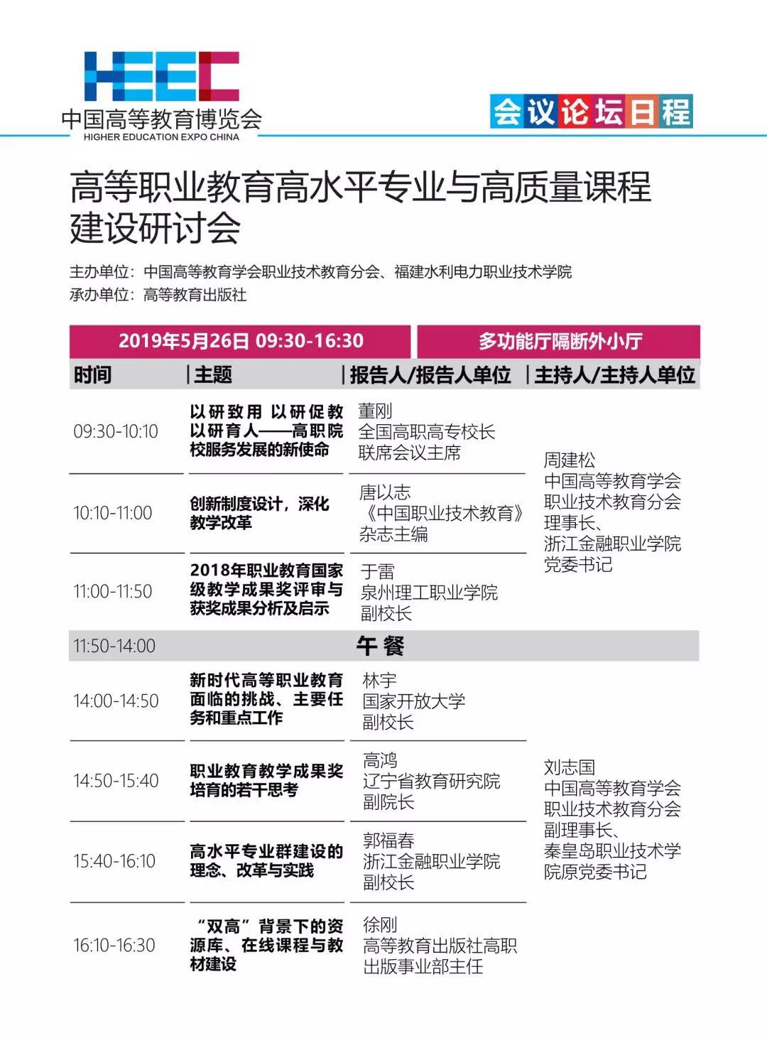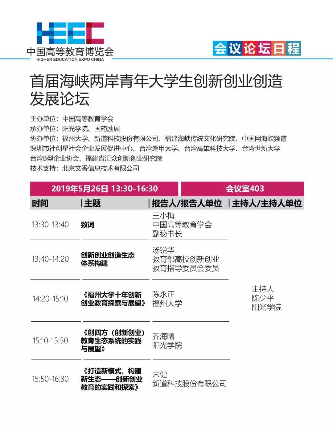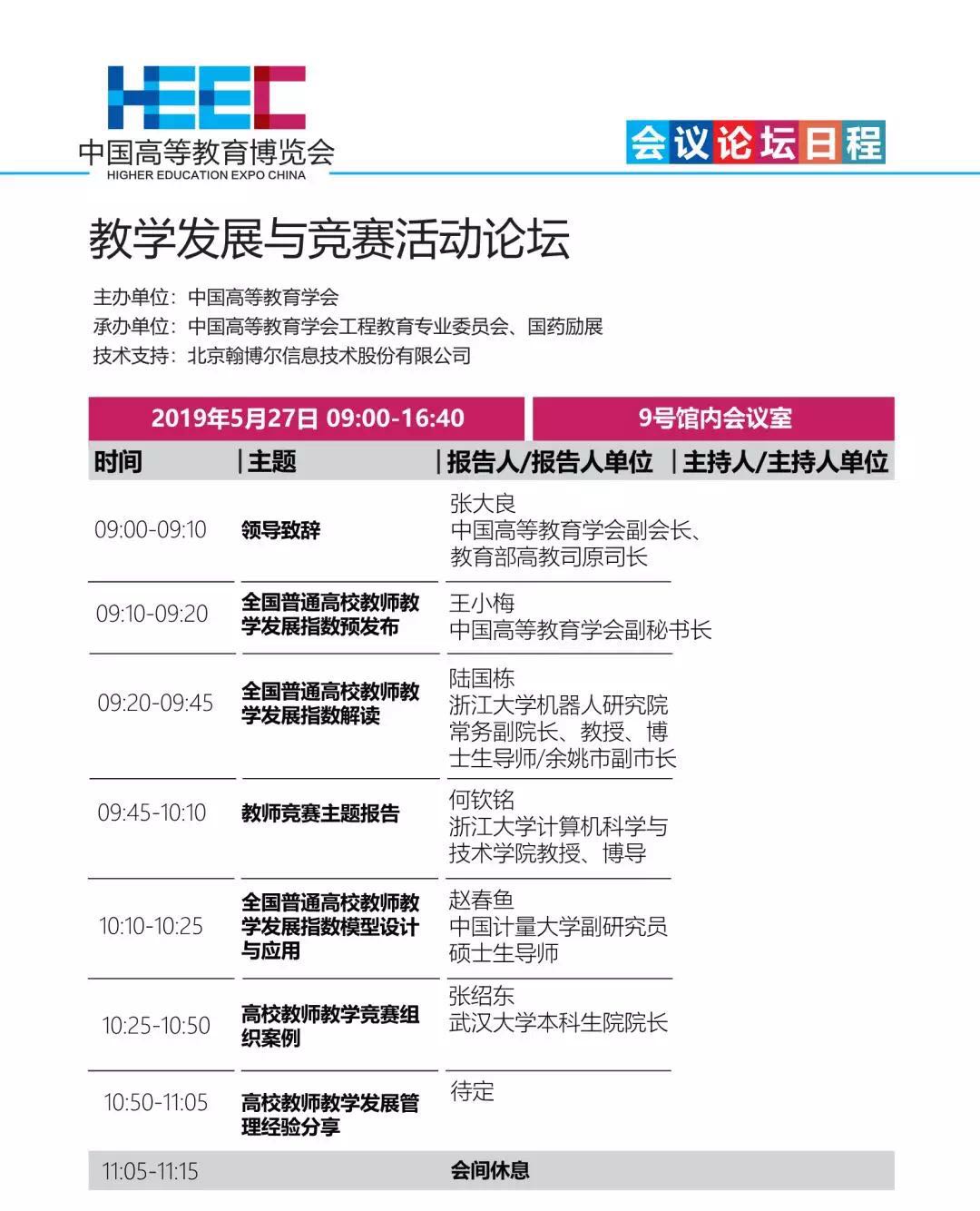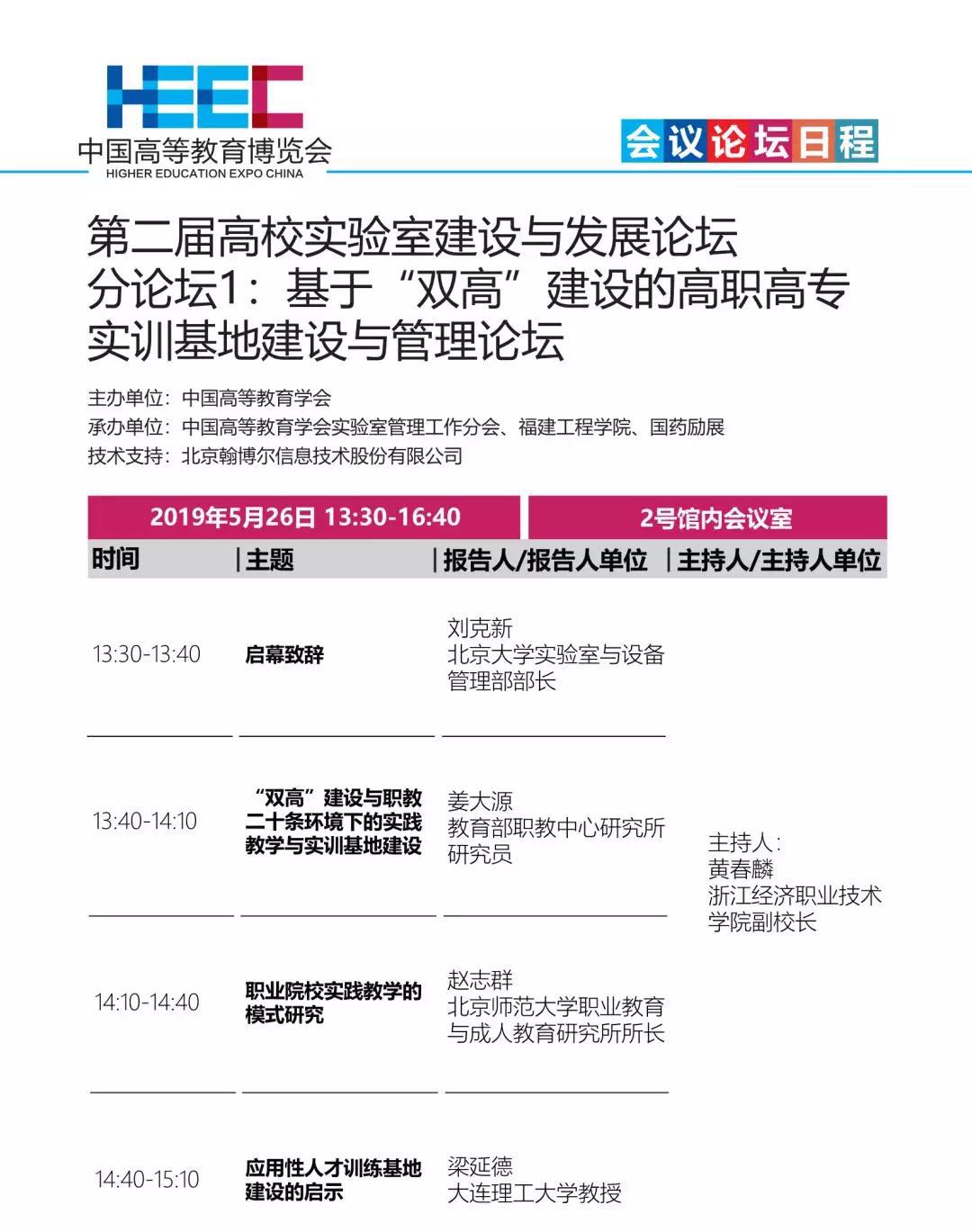 由中国高等教育学会主办,福建省高等教育学会,必一在线平台(中国)官网参与承办和协办,以“讴歌新中国70年辉煌成就 推进教育现代化创新发展”为主题的中国高等教育博览会(2019·春)将于5月26日至28日在福州海峡国际会展中心举办。本届展会将为大家带来千余家参展企业、2500余个展位、6万平方米展出面积、上万件展示产品,20余个高峰论坛、160余场专题报告。其中,必一在线平台(中国)官网还作为具体承办单位承办“万人计划”教学名师学术沙龙、国家级教学成果奖专题报告会、中国高等教育学会“一带一路”研究分会第一届理事会及第二届“一带一路”国家教育高峰论坛等活动。会议论坛日程如下: