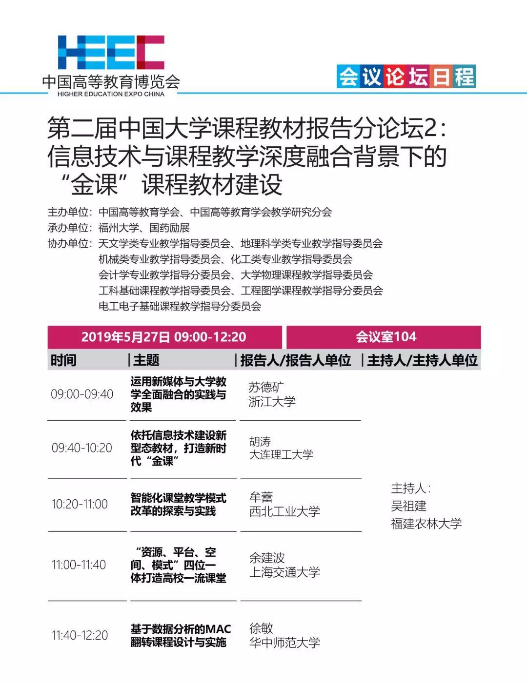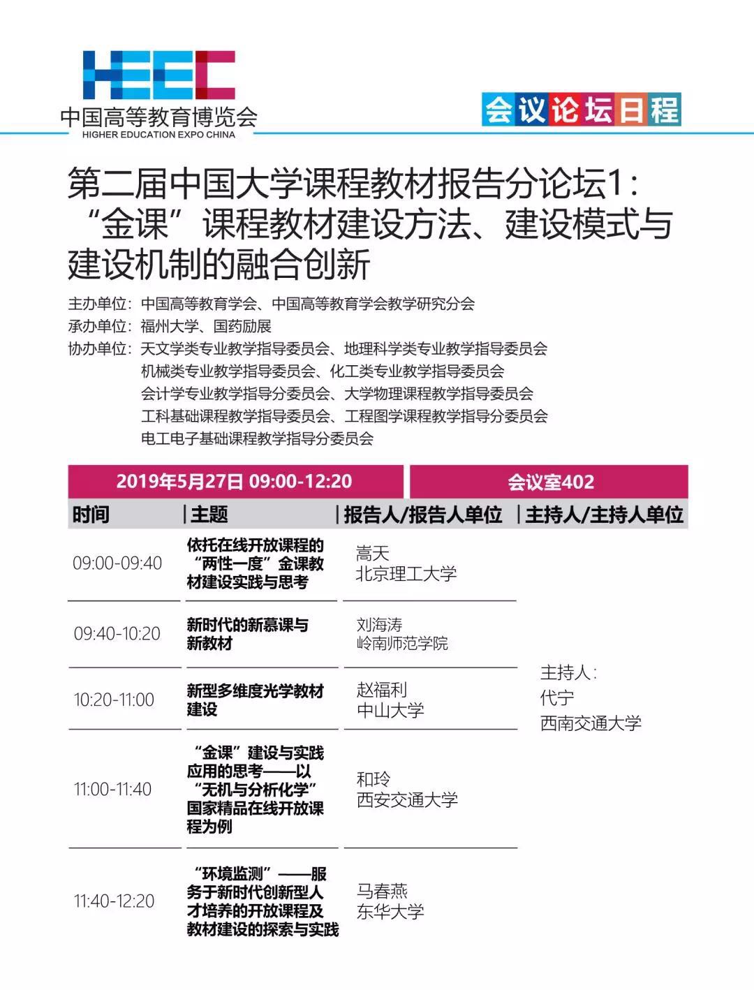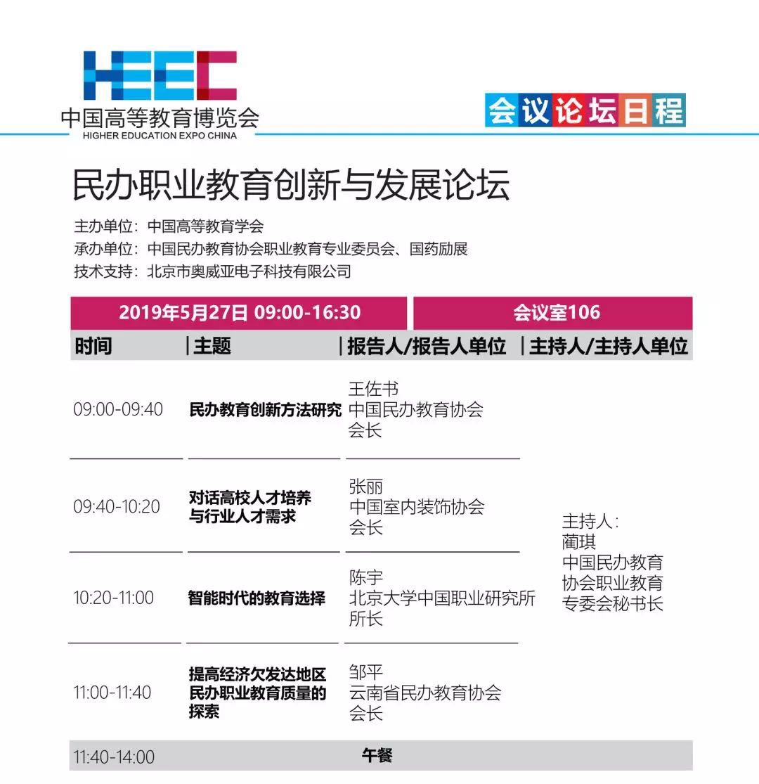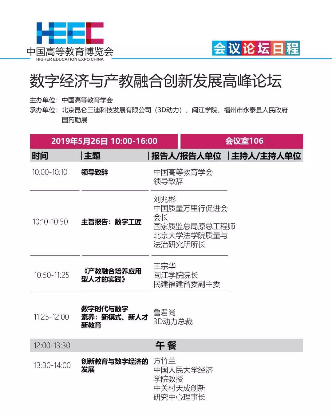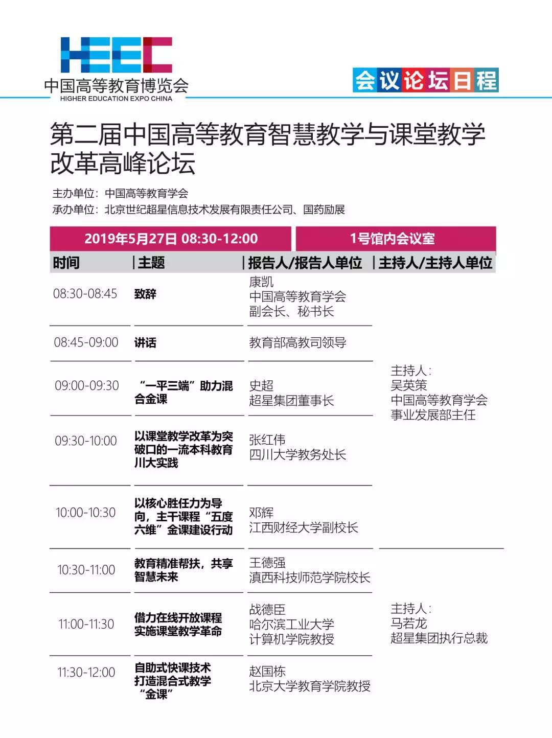 由中国高等教育学会主办,福建省高等教育学会,必一在线平台(中国)官网参与承办和协办,以“讴歌新中国70年辉煌成就 推进教育现代化创新发展”为主题的中国高等教育博览会(2019·春)将于5月26日至28日在福州海峡国际会展中心举办。本届展会将为大家带来千余家参展企业、2500余个展位、6万平方米展出面积、上万件展示产品,20余个高峰论坛、160余场专题报告。其中,必一在线平台(中国)官网还作为具体承办单位承办“万人计划”教学名师学术沙龙、国家级教学成果奖专题报告会、中国高等教育学会“一带一路”研究分会第一届理事会及第二届“一带一路”国家教育高峰论坛等活动。会议论坛日程如下: