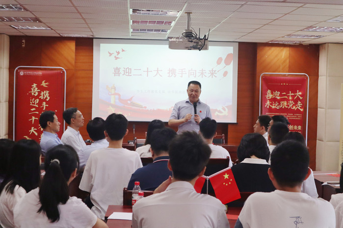 涂荣以学生工作部支部党员身份参加了本次活动。他向师生党员们致以节日祝福,并借用“行百里者半九十”“愈是困难愈向前”两句话,希望尚法党支部的毕业生党员们,倍加珍惜在校的宝贵时光,练就过硬本领,为未来发展奠定坚实基础;勇敢面对成长过程的问题和挑战,努力奋斗,砥砺前行,以青春奋进的昂扬姿态迎接党的二十大胜利召开。