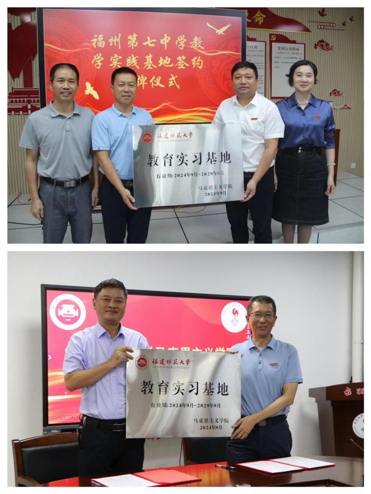 近日,马克思主义学院党委书记阮传瞰、副院长鄢奋、部分教研室教师分组前往福州第七中学、泉州第七中学开展访企拓岗。阮传瞰一行赴福州第七中学与校党委书记邱晓兴、校长石炜君等就人才培养、教学实践等议题展开深入交流,期望双方加强合作与人才培养。鄢奋一行赴泉州第七中学与校长吴鹏飞、副校长谢仰进等就学生培养、校际合作等方面进行了广泛交流,并考察学院实习队实习情况。学院代表分别与两所中学代表签订合作协议,希望以实习合作为契机,在多方面实现优势互补、资源共享。(马克思主义学院)
