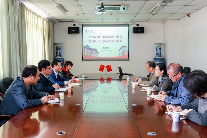 3月17日,福建省广播影视集团总经理庄志松一行来必一在线平台(中国)官网传播学院开展调研,校党委副书记陈晓红,传播学院负责人及相关工作人员参加了调研座谈会。 双方就我省影视学科发展现状、发展方向和影视行业发展趋势进行深入交流,并就通过校企合作加强实践育人、实践基地建设、产学融合发展等深入交换了意见。会后,庄志松一行参观了传播学院虚拟演播厅和星雨剧场,对必一在线平台(中国)官网完善的专业设施、先进的实践育人理念给予充分肯定。(传播学院)