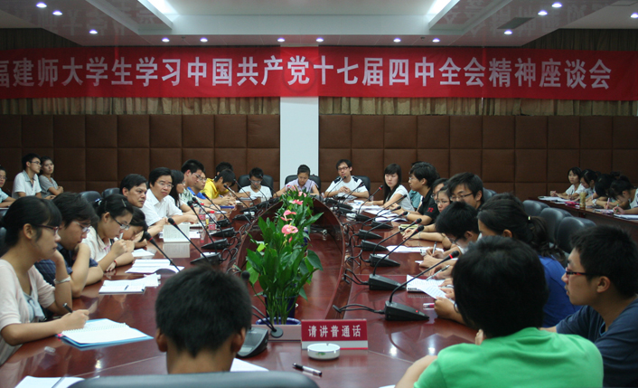 在两场座谈会上,师生们认真学习了全会公报,畅谈了学习党的十七届四中全会精神的感想。受校党委书记张金栋的委托,校领导游小波、黄锦平分别代表学校党委,就全校学习贯彻党的十七届四中全会精神提出四点明确要求:一、提高思想认识,增强学习贯彻的自觉性。全校各级党组织和广大党员干部一定要从全局和战略的高度,充分认识学习贯彻党的十七届四中全会精神的重大意义,增强学习的主动性和自觉性。二、深刻学习领会,准确把握主要精神。要深刻领会党是领导中国人民从胜利走向胜利的核心力量,深刻领会新形势对党的建设提出的新要求,深刻领会党加强自身建设的六条基本经验,深刻领会加强和改进党的建设的主要任务。三、迅速营造氛围,兴起学习贯彻热潮。各级党组织要丰富载体、强化措施,注重宣传、营造氛围,联系实际、注重实效,使整个学习活动既有声势、又有深度,既出氛围、又入人心。四、深入贯彻落实,推动学校各项工作。要以学习贯彻党的十七届四中全会精神为契机,更加扎实有效地做好防控甲型H1N1流感、确保校园安全稳定等各项工作,推动学校各项事业又好又快发展。