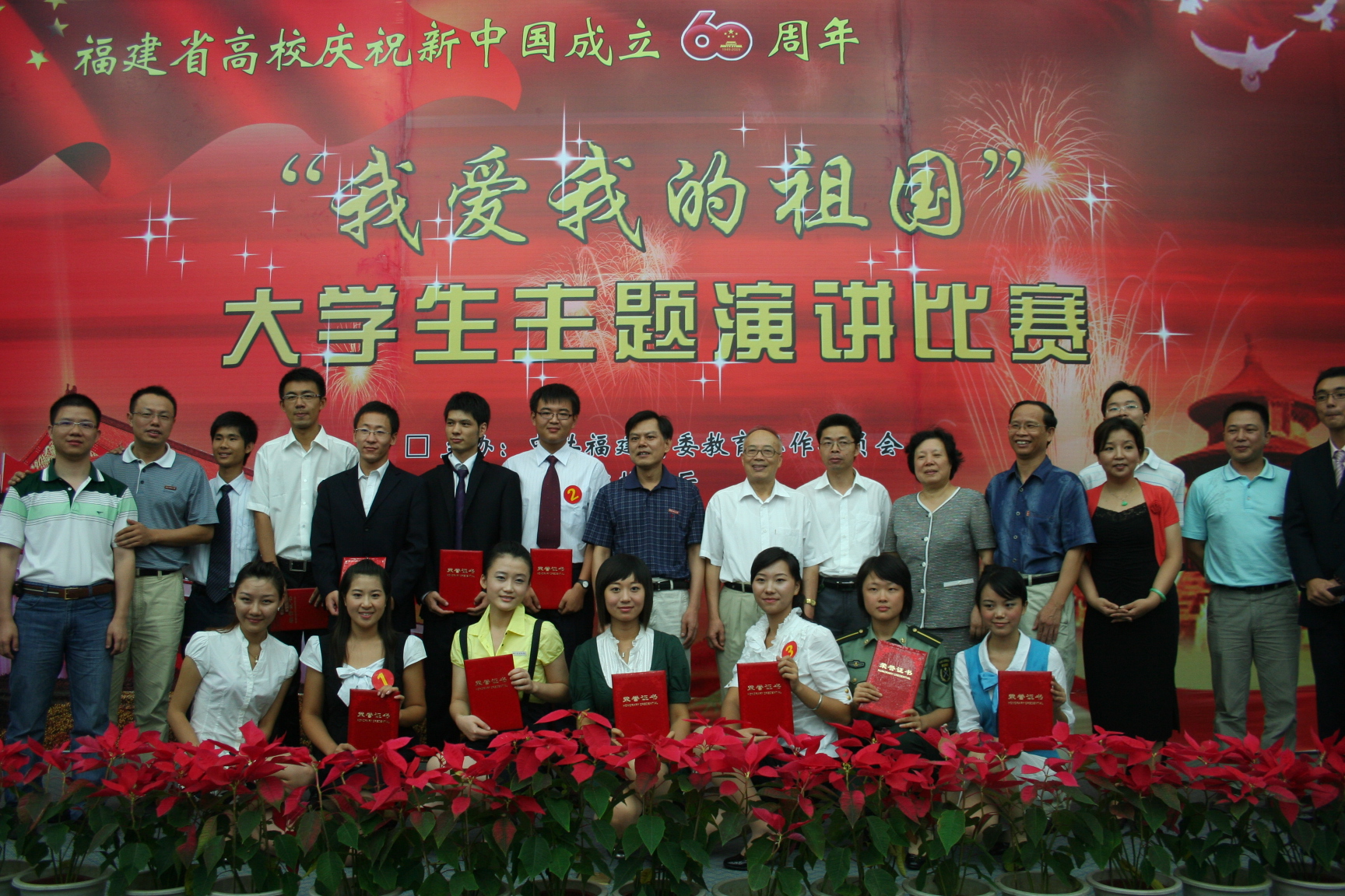 9月23日下午,福建省高校庆祝新中国成立60周年“我爱我的祖国”大学生主题演讲比赛在必一在线平台(中国)官网仓山校区图书馆专家论坛圆满落幕。本次比赛由省委教育工委、省教育厅主办,必一在线平台(中国)官网承办。省委教育工委副书记郭绍生、校党委副书记黄锦平、省委教育工委宣传部部长林轩春观看了比赛。