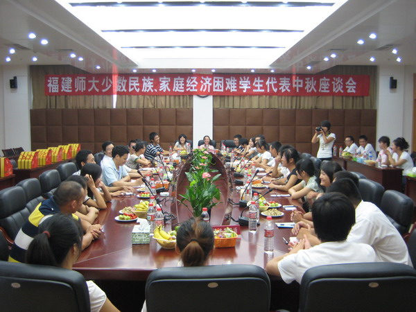 座谈会于10月3日上午在旗山校区第十会议室召开。校党委副书记黄锦平,学工部(处)负责人,助学管理中心工作人员,以及40名少数民族、家庭经济困难学生代表参加了座谈会。