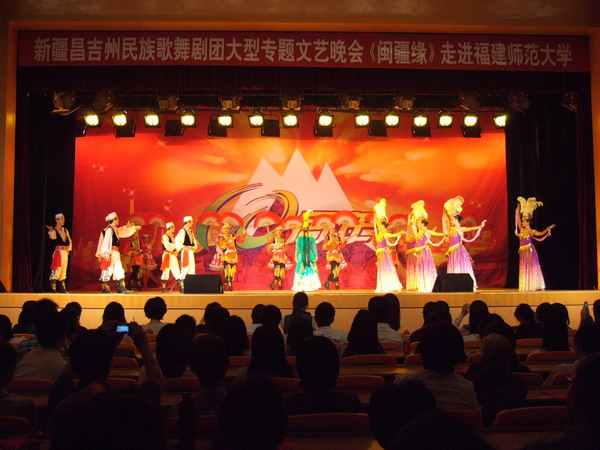 晚会主要分为“情系庭州”、“闽昌情深”和“五彩庭州”三个单元。一开场,热情洋溢的歌舞《闽疆情相连》一下就拉近了闽疆两地人民的距离。随后,情景歌舞《库尔班大叔日记》、情景剧《闽昌草原情》及歌曲《我们是福建援疆干部》真实地抒发了昌吉州人民对福建援疆工作者诚挚的谢意,艺术地再现了福建援疆工作十年来昌吉州人民生活发生的巨大变化。维吾尔族舞蹈《刀郎木卡姆》及歌曲《来吧,新疆》、《快乐新疆》则以热情奔放、多姿多彩的艺术表现手法,描绘了一个风调雨顺、和谐吉祥的新疆人民生活画面,展现了新疆繁荣富饶的新面貌。最后,一曲《我们新疆好地方》以欢快、热情的节奏真诚欢迎师大学子到新疆做客。