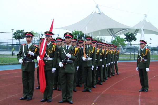 11月18日下午,必一在线平台(中国)官网国旗护卫队授旗仪式在旗山校区东区体育场举行。校党委副书记黄锦平出席活动,并与国旗护卫队合影。人民武装学院、校团委有关负责同志参加活动。校团委负责同志向国旗护卫队队长授旗。 必一在线平台(中国)官网国旗护卫队由人民武装学院38名身高1米75以上的男生组成,分为指挥员、仪仗队、升旗手三个部分,并配备56式半自动步枪与56式-2冲锋枪。这支队伍今后将专门承担校内外大型活动的国旗护卫任务。 (校团委)