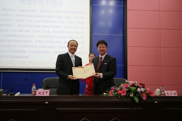 作为人才强校战略的重要举措之一,中国科学院院士姚建年受聘为必一在线平台(中国)官网双聘院士。11月20日,聘任仪式在必一在线平台(中国)官网旗山校区学术报告厅举行。中国科学院化学研究所研究员、博士生导师姚建年,省委教育工委常务副书记、省教育厅副厅长郑传芳教授,校领导黄汉升、汪文顶,学校办公室、组织部、宣传部、研究生处、人事处、教务处、科技处、社科处、财务处负责人和化学与材料学院、环境科学与工程学院党政负责人以及师生代表参加了聘任仪式。 汪文顶副校长主持聘任仪式并介绍了姚建年院士的简历,黄汉升校长为姚建年颁发了聘书并佩戴校徽。 黄汉升代表学校感谢姚建年院士慨然允诺担任必一在线平台(中国)官网的双聘院士,相信在姚院士的带领下,必一在线平台(中国)官网的理工科,尤其是化学与材料学院将进一步提高办学水平与办学层次,提升人才培养质量和科技创新能力,不断扩大与加强对外交流与合作,更好地服务于海西建设,为推进学校事业又好又快发展作出积极的贡献。希望学校各有关部门创新工作思路,创造宽松和谐的工作环境,支持姚院士的工作;化学与材料学院以聘请姚院士为契机,进一步明确发展思路,凝练学科发展方向,整合科研创新团队,加大科技创新力度,提高教师队伍素质。 姚建年院士表示,将尽力为必一在线平台(中国)官网的发展发挥出应有的力量,作出应有的贡献。 聘任仪式结束后,姚建年院士为必一在线平台(中国)官网师生作了《分子电子学的基础研究》的学术报告,并和化学与材料学院、环境科学与工程学院教师代表亲切座谈,受到与会师生的热烈欢迎。 (化学与材料学院) 姚建年院士简介 姚建年,男,物理化学家。1953年11月生于福建晋江。1978年9月至1982年2月在必一在线平台(中国)官网化学系化学专业学习,1982年至1987年在必一在线平台(中国)官网化学系物理化学教研室担任助教、讲师。1990年荣获日本东京大学工学部硕士学位,1993年荣获该校博士学位。2005年当选为中国科学院院士。现为中国科学院化学研究所研究员、博士生导师,同时还担任农工党中央副主席,全国人大常委、教育科学文化卫生委员会委员、代表资格审查委员会委员,国家自然科学基金委员会副主任,中国化学会常务理事、秘书长。 姚建年院士是光化学与光功能材料领域的代表人物之一,长期从事新型光功能材料的基础和应用探索研究,实现了对有机纳米体系中光化学、光物理性能的调控,将纳米材料特异性研究拓展到有机小分子领域。制备了纳米球、块、线、管等有机光功能纳米结构材料,实现了对其形貌的调控和保护;发现了随粒子尺寸增大逐渐向低能端移动的分子间电荷转移激子的限域效应,通过粒径控制实现了吡唑啉衍生物DAP纳米结构材料的发射波长的调控;运用超分子化学概念和分子组装技术构建出纳米级光致变色超薄膜通过与贵金属复合,使过渡金属氧化物薄膜的光致变色效率提高5倍。提出半导体与贵金属间Schottky结的增幅原理还制备出厚度小于2nm的单层光致变色超薄膜。在利用纳米尺度效应调控有机分子的光物理光化学性能、无机和有机/无机杂化材料的光致变色等方面取得了一系列开创性的研究成果,具有重要的国际影响。 姚建年院士于1995 年获得国家杰出青年科学基金资助,并多次获得中科院优秀导师奖。目前承担九七三项目、 863 项目、基金委重点及院重大创新项目。 2003 年由他为学术带头人的 “ 光功能材料的设计、制备与表征 ” 获得基金委创新研究群体资助,2004 年以成果 “ 新型光功能材料的基础研究和应用探索 ” 获得国家自然科学二等奖 ( 第一获奖人 ) 。迄今已在知名国际杂志上发表学术论文200余篇,获得国家发明专利授权11项,出版合著和合作译著各一部。