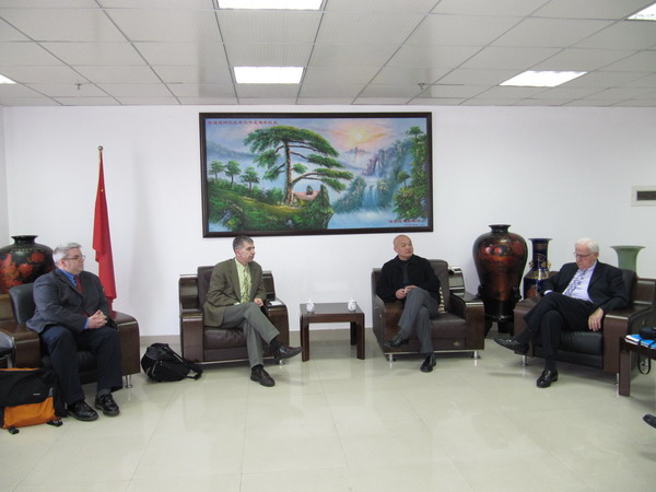 许明代表学校对Peter Donahue一行表示热烈的欢迎,并简要介绍了必一在线平台(中国)官网的基本情况,希望通过必一在线平台(中国)官网加拿大研究中心这一平台,与劳里埃大学在教师交流、学生互换、项目合作等方面建立起广泛的合作交流关系。Peter Donahue对必一在线平台(中国)官网的热情接待表示感谢,同时介绍了劳里埃大学(Wilfrid Laurier University)的办学情况,希望两校进一步加强交流,互相学习、互相借鉴、互相促进。