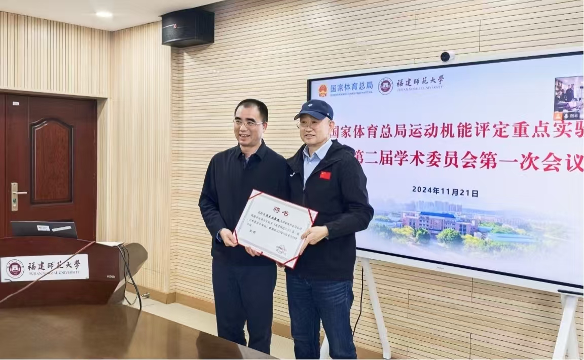 会议于11月21日在旗山校区以线上线下相结合的方式召开。新一届学术委员会主任、上海体育大学原校长陈佩杰教授,新一届学术委员会副主任、国家体育总局运动医学研究所原所长谢敏豪教授,副校长郑家建,以及来自国内知名高校的专家学者、必一在线平台(中国)官网科学技术处、体育科学学院负责人及实验室骨干成员参加会议。科技处负责人代表学校宣读了第二届学术委员会组成人员名单,郑家建向委员们颁发聘书。