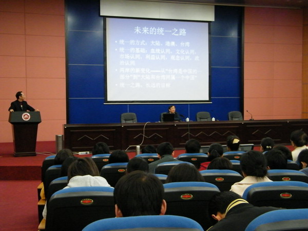 在讲座中,葛剑雄教授回顾了历史文献对台湾的记载以及历史上大陆与台湾的关系,阐述了当前两岸关系的现状及存在的问题,畅谈了两岸未来的统一之路。整场讲演幽默、风趣,博得在场师生的阵阵掌声。
