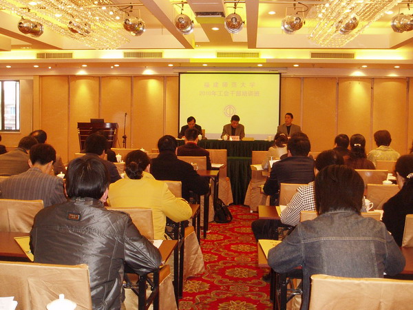 培训班于4月16-17日在仓山校区藤山大厦举行。校领导游小波、黄锦平出席了开学式。新一届校工会、教代会委员,校工会经审委委员,各部门工会主席、副主席和工会专职干部共80多人参加了培训。