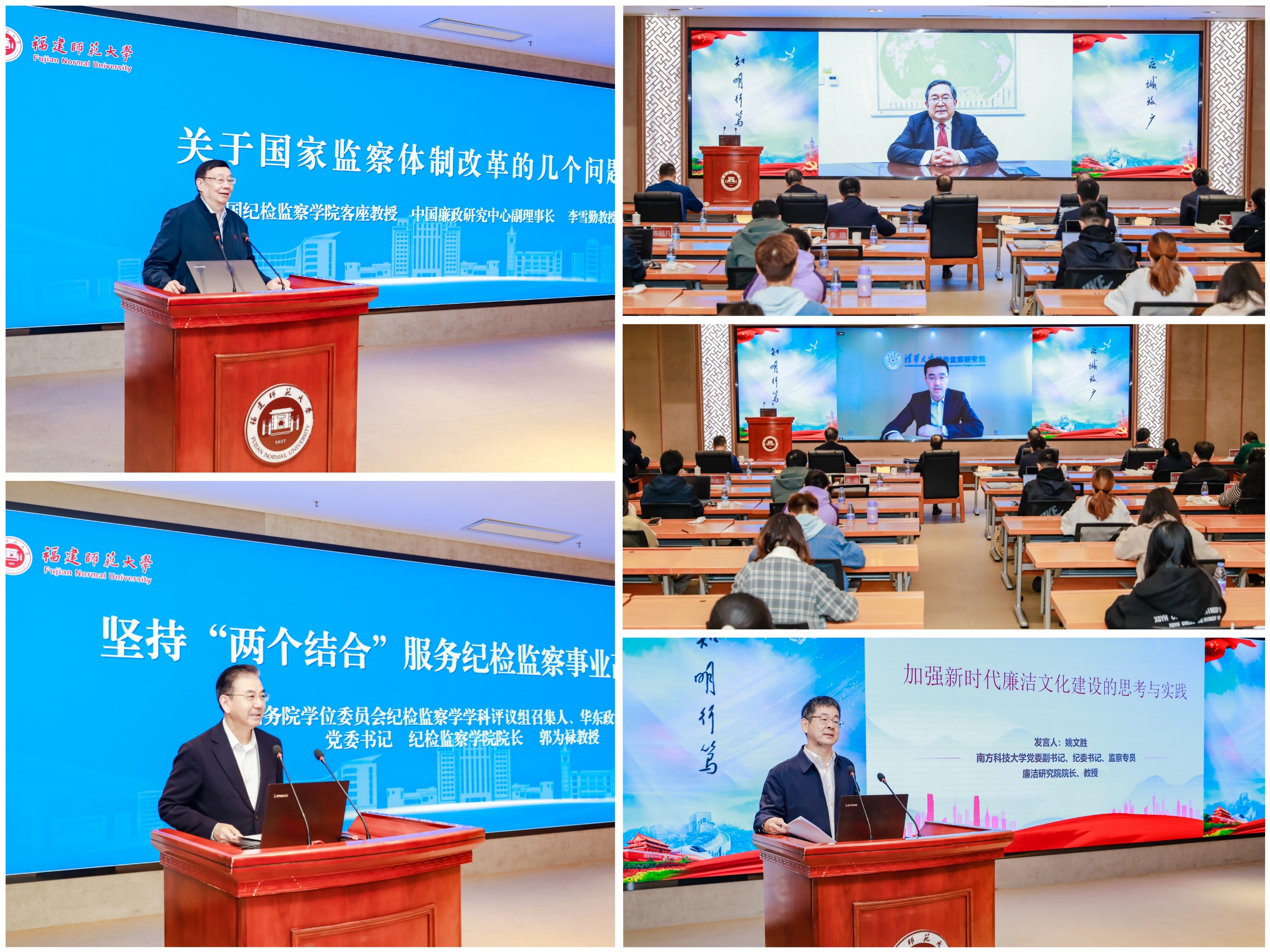 研讨会上,李雪勤、郭为禄、莫纪宏、过勇、姚文胜作了主旨演讲;北京科技大学廉政研究中心主任、马克思主义学院院长宋伟教授,湘潭大学纪检监察研究院院长吴建雄教授,中国人民大学法学院副院长程雷教授,中国政法大学纪检监察学院副院长施鹏鹏教授,中国政法大学国家监察研究院副院长李莉教授等10位专家学者作了主题报告。与会专家围绕“构建纪检监察学自主知识体系、推进纪检监察学科建设”主题,结合学习贯彻党的二十届三中全会精神、国家监察体制改革、新时代廉洁文化建设、监察强制措施体系建构、派驻监督、纪检监察学课程建设、反腐败国际合作等议题,分享了纪检监察理论与实践前沿问题研究成果,探讨了加快构建中国纪检监察学自主知识体系的实践路径,提出了相关建设性意见和建议,对推动新时代纪检监察学科高质量发展具有积极的促进作用。