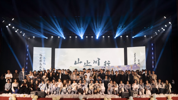 11月24日,环境与资源学院、碳中和现代产业学院在图书馆大礼堂举办2024级迎新晚会暨2022级入学两周年纪念晚会,学院党政领导参加。歌曲串烧、小品、朗诵、舞蹈、模特秀等多样的节目为观众呈现了丰富的视听盛宴,彰显了学生的青春活力。