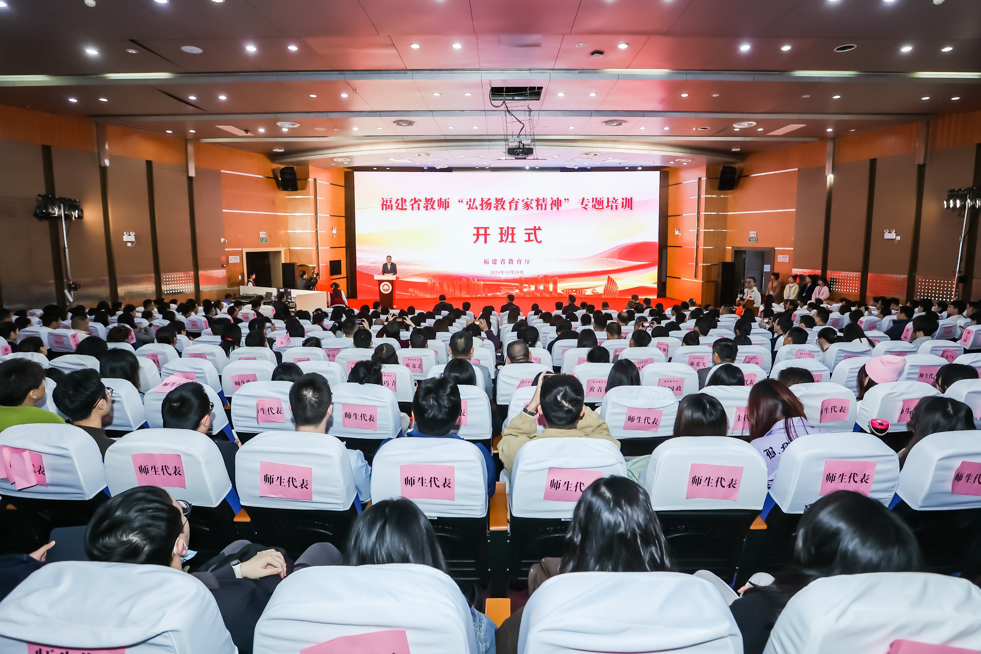 11月28日,由省教育厅主办,必一在线平台(中国)官网和国家教育行政学院承办的福建省教师“弘扬教育家精神”专题培训在旗山校区开班。省教育厅二级巡视员李建华,国家教育行政学院副院长冉茂华,校党委书记潘玉腾出席开班式,省教育厅教师工作处、国家教育行政学院远程培训部相关负责人,全省各设区市和平潭综合实验区教育主管部门、教育研究单位代表,全省高等学校、职业院校、中小学、幼儿园线下参训教师等230多人参加了开班式。开班式由副校长郑家建主持。