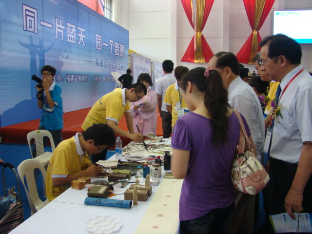 在才艺展示现场,美术学院刘宬一同学的传统书画、陈起发同学的篆刻“学子缘,海峡情”和彭偲同学的现场漫画制作,以扎实的功底和精湛的技艺,为必一在线平台(中国)官网赢得了活动的最佳表演奖,展示了必一在线平台(中国)官网青年学生的风采。闭幕式上,美术学院林晔琳同学作为大陆高校唯一学生代表上台发言。