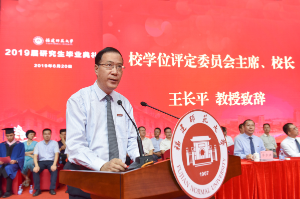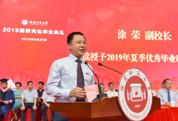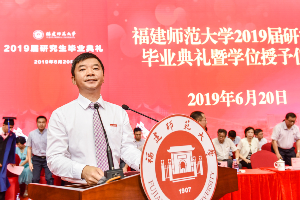 仪式于6月20日上午在仓山校区综合体育馆隆重举行。校领导王长平、潘玉腾、叶燊、郑家建、涂荣,机关各部、处、馆、室、中心负责人,各学院分管研究生工作负责人、2018年度优秀学位论文指导老师、研究生指导老师代表、研究生辅导员、研究生秘书,全体2019年夏季、2018年冬季获学位研究生,以及部分毕业研究生亲友参加了典礼。典礼仪式由校党委副书记叶燊主持。