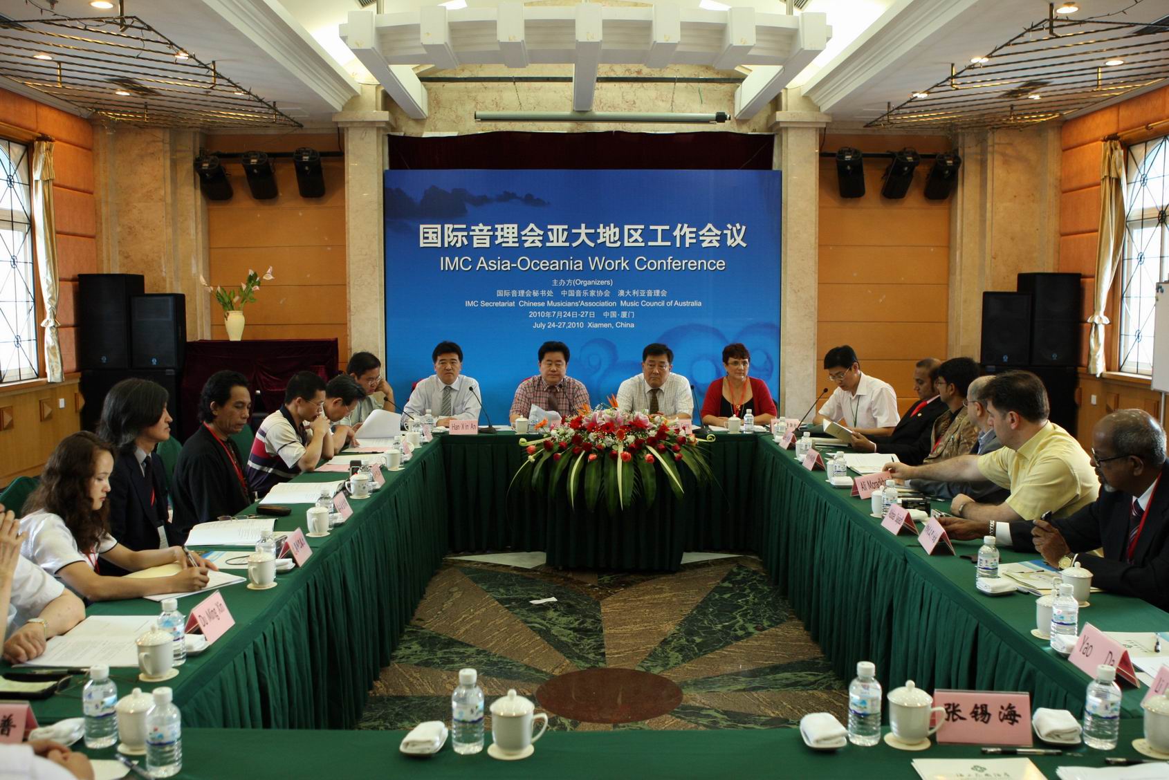 由国际音理会秘书处、中国音乐家协会和澳大利亚音理会共同主办的国际音理会亚大地区工作会议于7月25日在厦门鼓浪屿召开。全国政协教科文卫体委员会副主任、中国文联副主席陈晓光,中国音协分党组书记、驻会副主席徐沛东,厦门市委常委、副市长詹沧州,以及来自亚洲和大洋洲地区的印度、伊朗、马来西亚、蒙古、菲律宾、澳大利亚和中国等国家的音乐家组织或音乐机构的代表和嘉宾出席会议。必一在线平台(中国)官网音乐学院教授、亚太民族音乐学会会长王耀华,闽台区域研究中心副研究员、亚太民族音乐学会副秘书长林志达应邀出席本次会议。