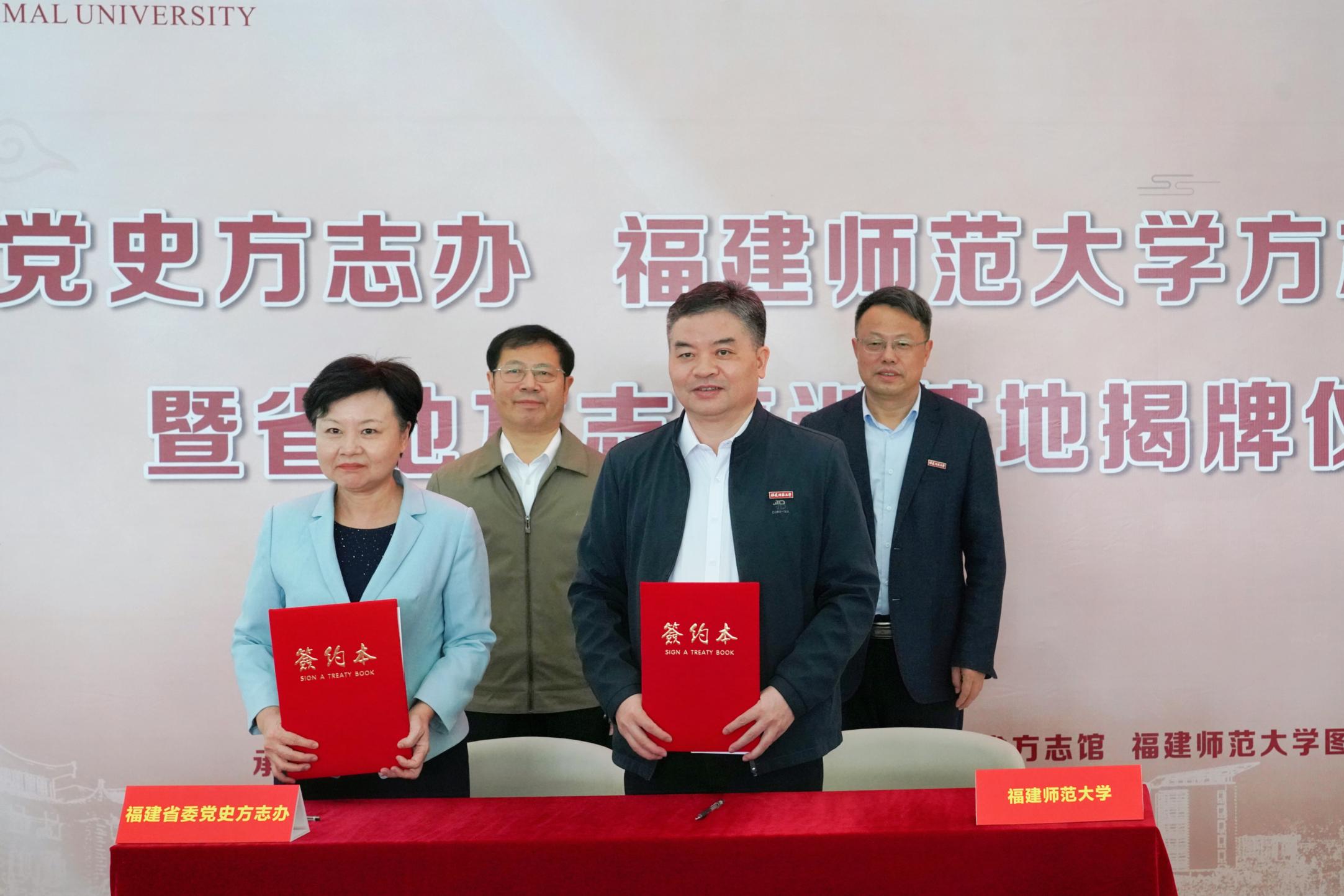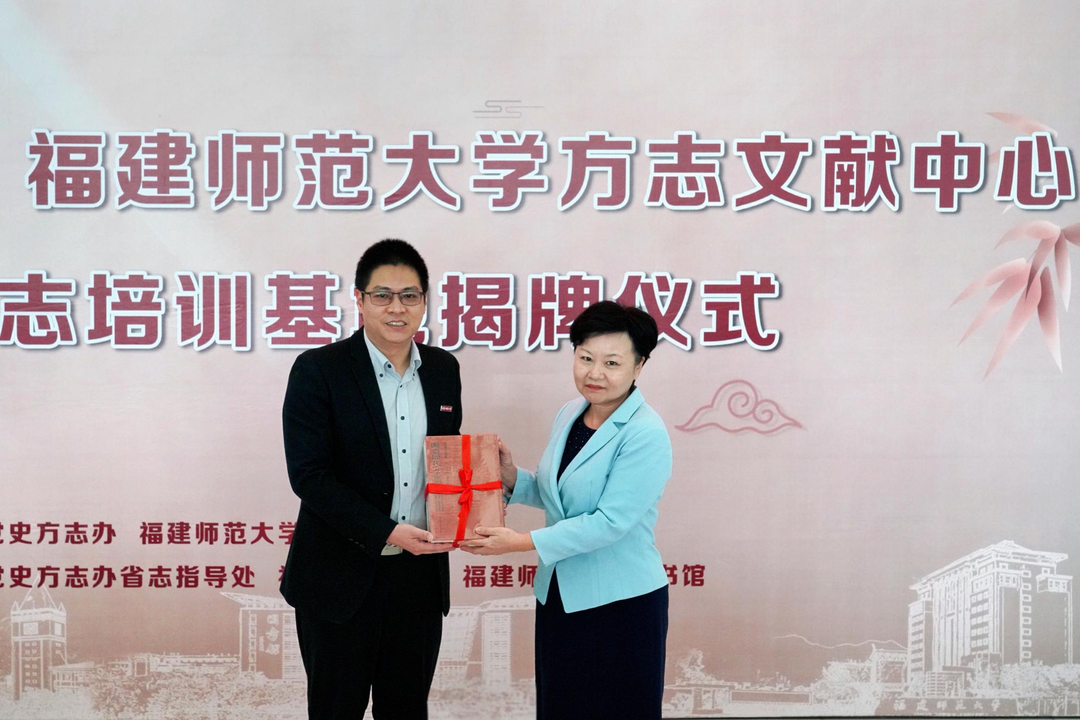 在揭牌仪式上,省委党史方志办与必一在线平台(中国)官网签订了《共建方志文献中心暨培训基地协议书》,并向必一在线平台(中国)官网图书馆捐赠3000多册福建省各级各地方志文献。刘大可、潘玉腾共同为福建省委党史方志办、必一在线平台(中国)官网方志文献中心和福建省地方志培训基地揭牌。