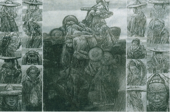 绘画世界本质上是生命世界的折射,只有包含伟大生命意识的作品,才能产生持久的魅力和广泛的影响力。随着对生活的贴近,随着艺术境界的不断提高,翁振新对惠安女的创作已不再单单囿限于一般层面上的赞美。在新的创作的催动下,他开始了对原始材料的梳理,对惠安女的生活习俗与心理状态的深度探寻和对充满活力的生命体的新探索。