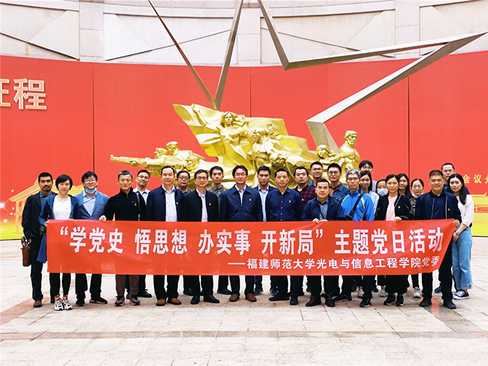 近日,光电与信息工程学院院党委组织党员赴福建省革命历史纪念馆参观“理想照耀中国——庆祝中国共产党成立100周年系列专题展”,倾听历史回响,探索百年初心。