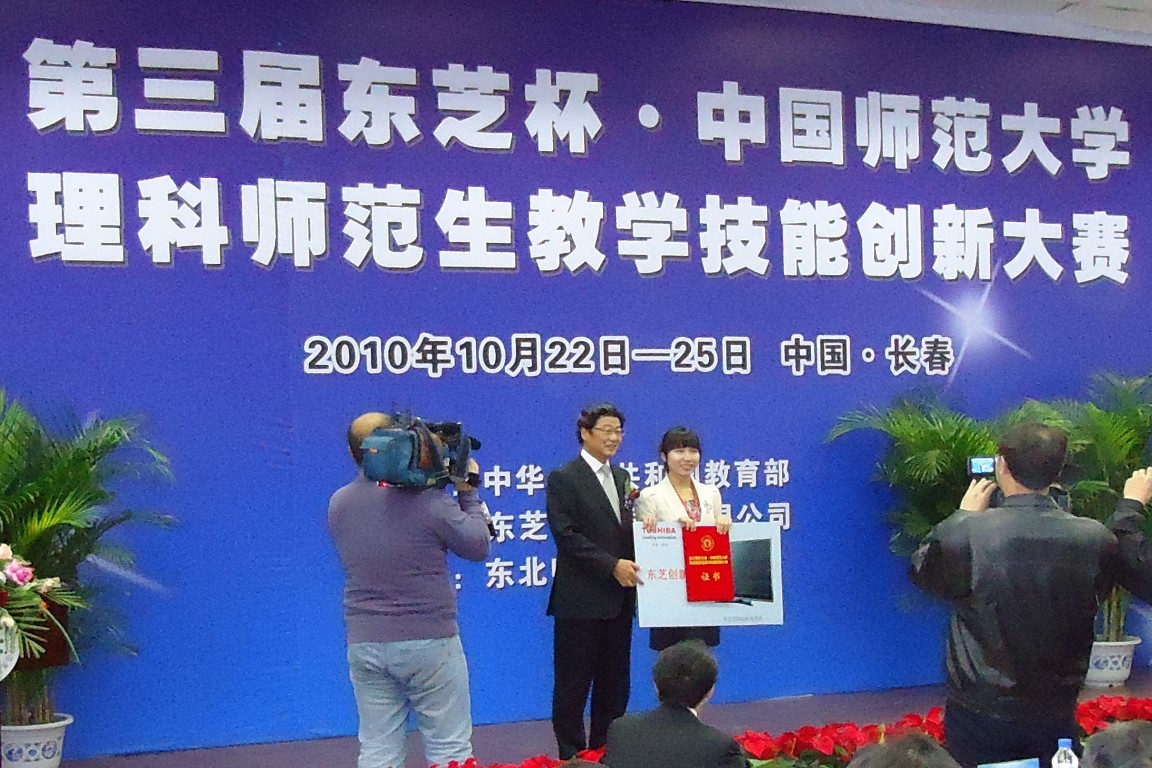 本赛事是教育部举办的高水平的理科师范生教学技能创新实践比赛,分数学、物理、化学三个学科。其目的是促进中日友好和支持中国教育事业,培养造就一批“师德高尚、理念先进、业务精湛、锐意创新”的优秀理科教师后备力量,为中国师范教育发展和自主创新能力的提高作贡献。前两届仅在6所全国部属重点师范大学及6所省属重点师范大学中举行,今年第一次面向全国40所师范大学学生举办,每学科派出一名学生参加决赛,内容包括即席讲演、教案评比、模拟授课、现场问答四个部分,由教育部和各院校专家组成评委会进行专业评选。必一在线平台(中国)官网首次参赛即取得了优异的成绩,得到大赛组委会的高度评价。王素云同学还作为唯一参赛选手,发表获奖感言。