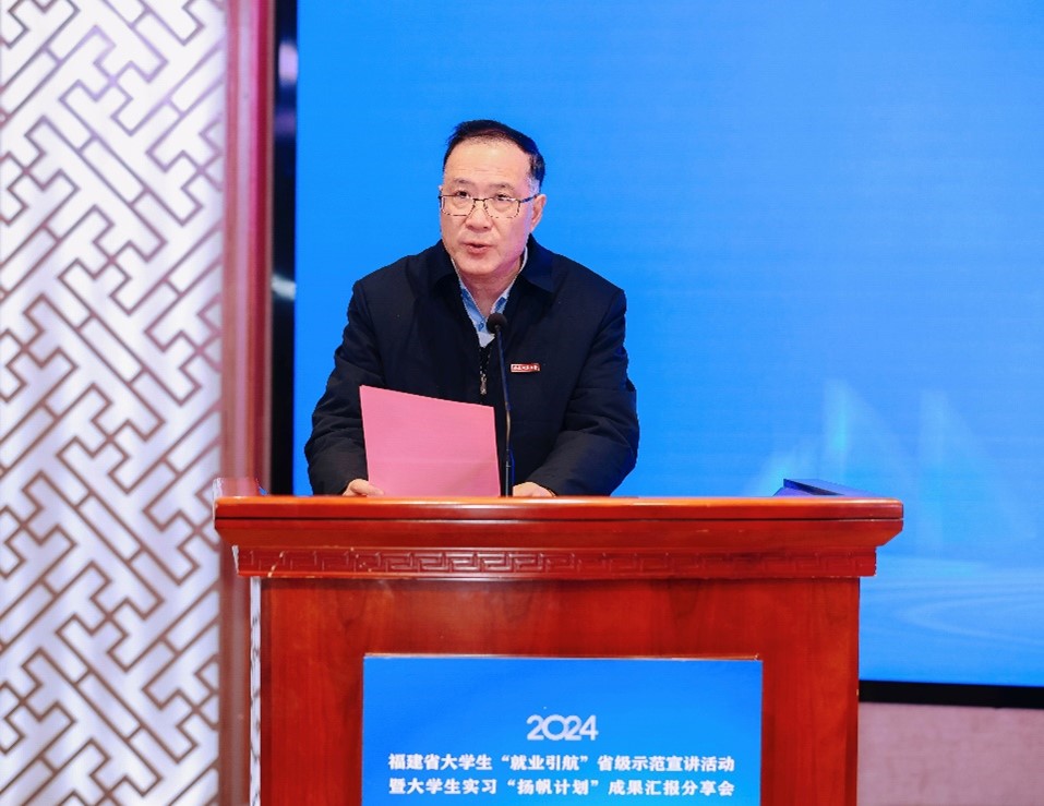 李腾在讲话中介绍了近年来我省“共青团促进大学生就业行动”实施情况,寄语广大青年学子树立正确就业观,提升就业竞争力,把握就业新机遇,乘着福建深度参与高质量共建“一带一路”的时代东风,发扬敢为人先、爱拼会赢的开拓创新精神,勇于“闯出去”寻求发展、干事创业,以青春之我、奋斗之我干出一番新事业、打开人生新天地。