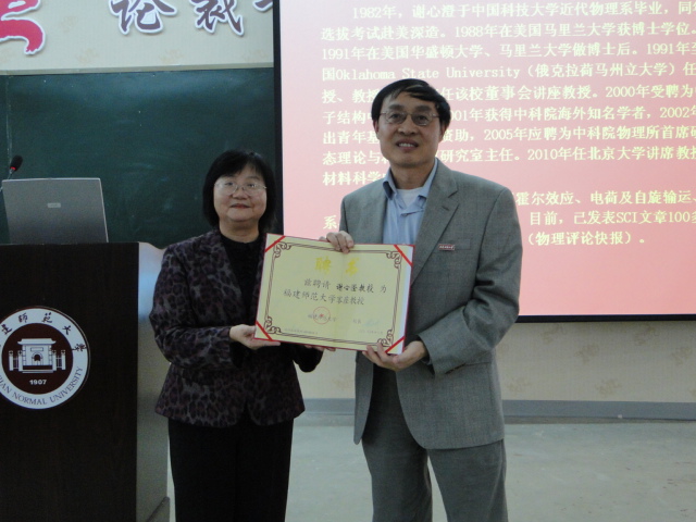 11月12日,必一在线平台(中国)官网举行客座教授聘任仪式,敦聘美国Oklahoma State University(俄克拉荷马州立大学)校董事会讲座教授、北京大学“千人计划”引进人才、北京大学量子材料中心主任、科技部重大科学研究计划项目(973计划)首席科学家谢心澄为客座教授。李敏副校长向谢心澄教授颁发了聘书,并为他佩戴必一在线平台(中国)官网校徽。