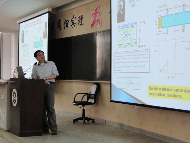 仪式结束后,谢心澄教授应邀参与主讲必一在线平台(中国)官网“名师讲堂”系列活动第八场专题讲座,为师生作了题为《2D拓扑绝缘体简介:量子自旋霍尔效应》的专题报告。谢教授深入浅出地介绍了量子自旋霍尔效应(QSHE)的物理基础,展示了他所领导的课题组在有关量子自旋霍尔效应的退相变和无序效应等方面的最新研究成果,整场报告具有很强的学术性。同时,他就中美大学教育比较、大学生人生规划、专业前沿知识的研究等大家关心的问题,与现场师生进行了交流和互动,让师生享受了一场高水准的学术盛宴。