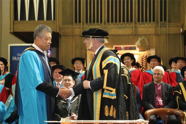 李宝银书记一行还应邀出席并见证了中国驻英国大使刘晓明荣誉博士授予仪式,聆听了刘晓明大使的演讲——《深耕细作育英才,砥砺前行谋未来》。刘晓明大使指出:“哈德斯菲尔德大学与中国已经结下不解之缘。”哈德斯菲尔德大学“在未来中英教育交流合作中将发挥重要作用。”哈德斯菲尔德大学名誉校长英国约克公爵安德鲁王子、克莱恩校长、哈德斯菲尔德市市长侯赛因、曼彻斯特总领事馆原总领事郑曦、中国驻英国大使馆教育处王永利公参、哈德斯菲尔德大学毕业生亲友以及必一在线平台(中国)官网代表团等200余人参加了仪式。在典礼开始之际,克莱恩校长热情洋溢地介绍了与必一在线平台(中国)官网合作举办的通信工程专业本科中外合作办学项目,并对联合申报中外合作办学机构寄予了厚望。