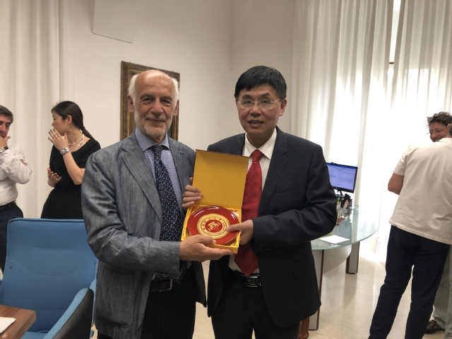 李宝银书记向卡塔尼亚大学赠送必一在线平台(中国)官网校牌