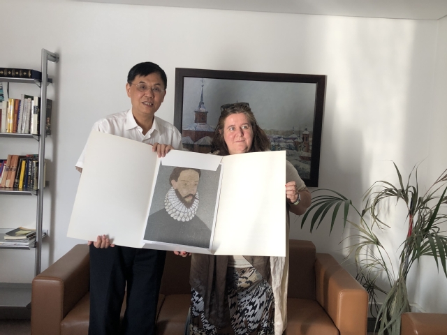 在西班牙阿尔卡拉大学,李宝银书记与语言中心校长德尔瓦教授等亲切会谈,就两校合作举办西班牙语专业“3+1”本科教育项目、“3+2”本硕连读项目、师资培训与提升等一系列问题展开了深入讨论,并就拓展两校其他专业领域的合作达成了初步意向。