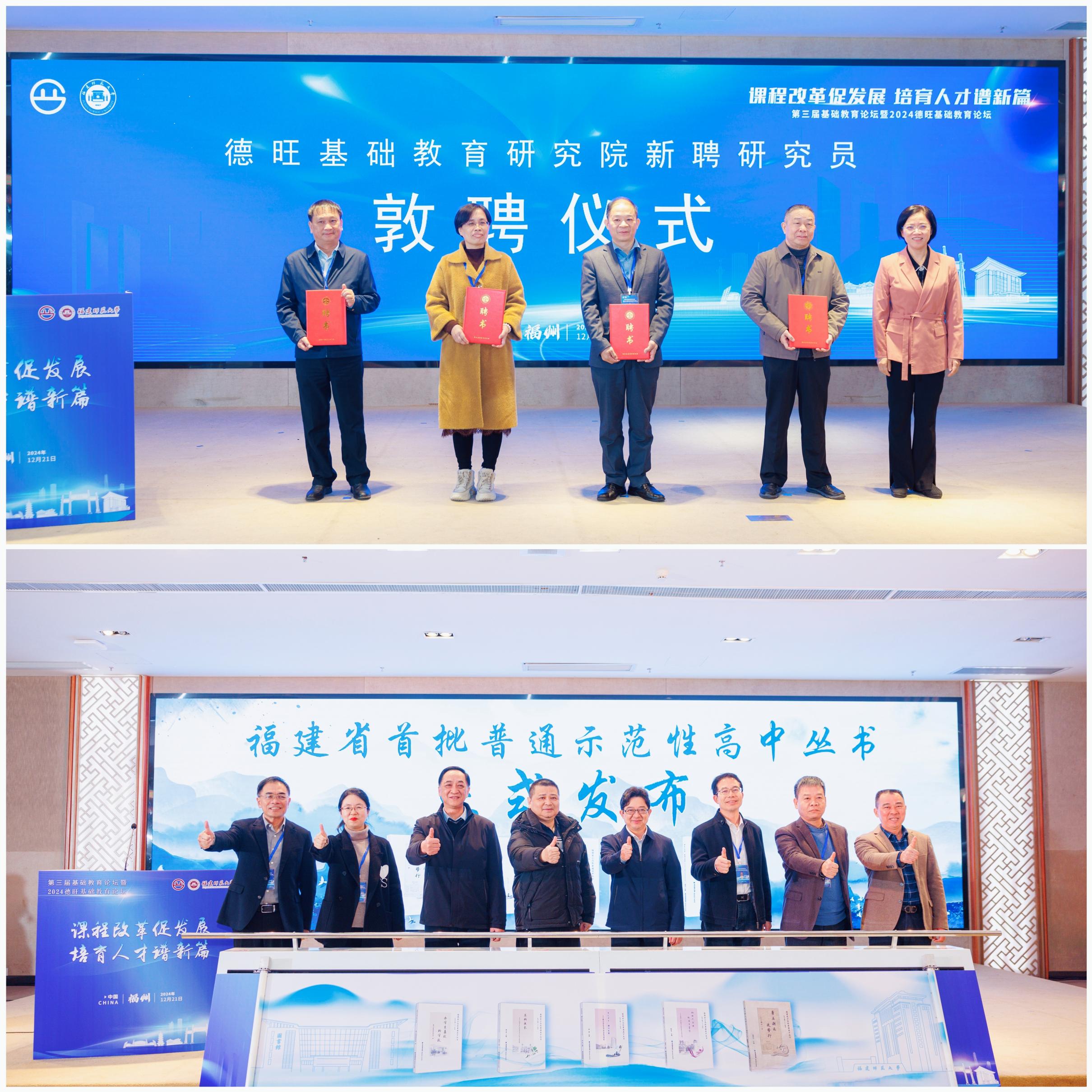 开幕式上,发布了新中国成立以来福建省特殊教育发展2024年度报告、福建省特殊家庭儿童成长情况2024年度报告、新中国成立以来福建基础教育教师发展2024年度报告、福建省义务教育阶段海洋教育2024年度报告,举行了德旺基础教育研究院2024年特聘研究员、客座研究员敦聘仪式和福建省首批普通示范性高中丛书发布仪式。