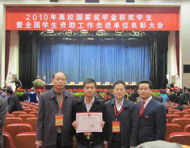 2010年全国高校国家奖学金获奖学生暨全国学生资助工作先进单位表彰大会于12月20日在北京举行。教育部、财政部、中国人民银行、银监会、中国银行、国家开发银行有关部门负责人,各省(区、市)教育部门和部分高校负责人,2009-2010学年度国家奖学金获奖学生代表以及部分在京高校师生代表约800人参加会议。省教育厅副厅长薛卫民、省学生资助管理中心主任吴选兴和必一在线平台(中国)官网闽南科技学院学生林艺雄代表福建省参加了会议。会上为国家奖学金获奖学生颁发了证书。 (闽南科技学院 庄天怀)