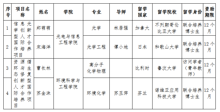 2021年创新型人才国际合作培养项目第一批留学人员录取名单: